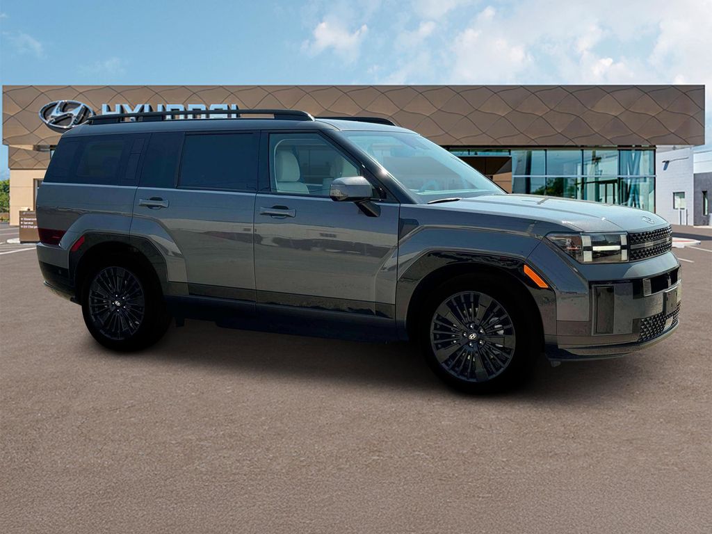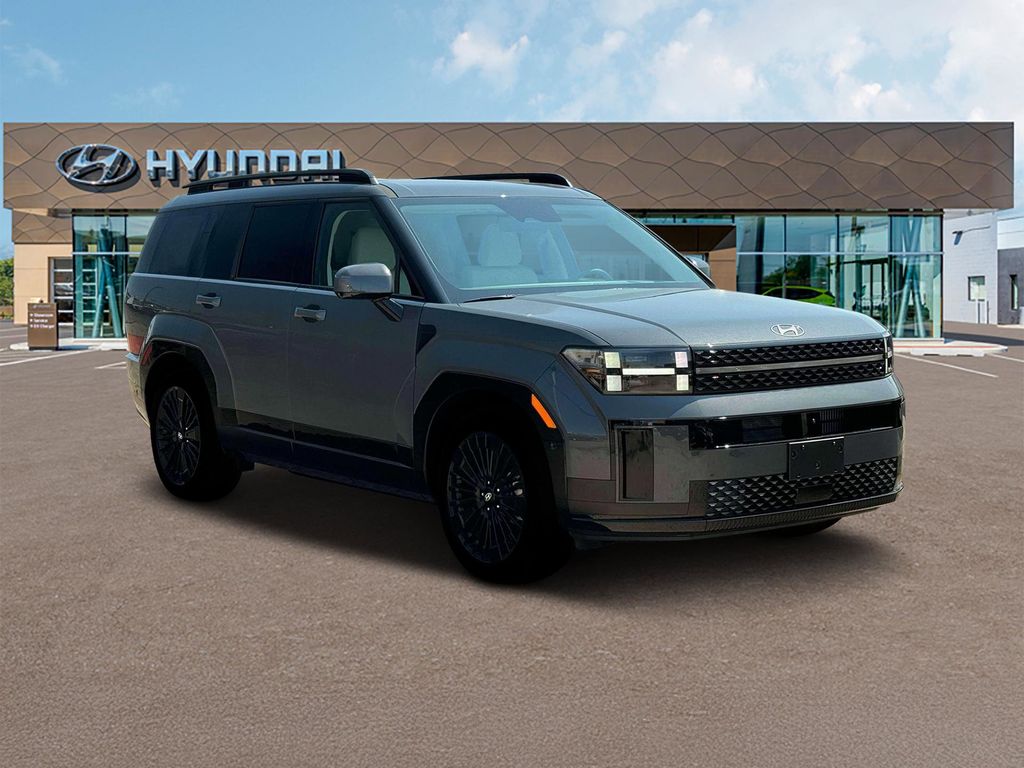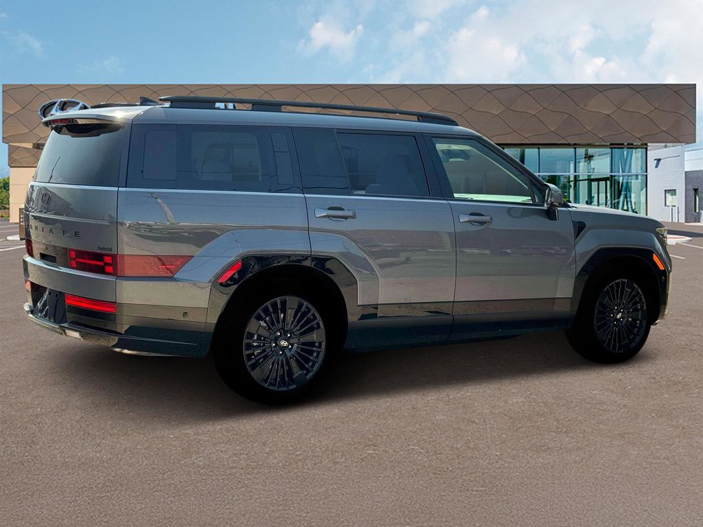 Ecotronic Gray 2025 Hyundai Santa Fe Hybrid Calligraphy FWD 6-Speed Automatic with Shiftronic I4 Santa Fe Hybrid Calligraphy, I4, Black Leather.Option Group 01, Santa Fe Hybrid Calligraphy, I4, Black Leather, 12 Speakers, 3rd row seats: bench, 4-Wheel Disc Brakes, ABS brakes, Air Conditioning, Alloy wheels, AM/FM radio: SiriusXM, Apple CarPlay & Android Auto, Auto High-beam Headlights, Auto-dimming Rear-View mirror, Automatic temperature control, Brake assist, Bumpers: body-color, Cargo Cover, Carpeted Floor Mats, Cross Rails, Delay-off headlights, Driver door bin, Driver vanity mirror, Dual front impact airbags, Dual front side impact airbags, Electronic Stability Control, Emergency communication system, Exterior Parking Camera Rear, First Aid Kit, Four wheel independent suspension, Front anti-roll bar, Front Bucket Seats, Front Center Armrest, Front dual zone A/C, Front reading lights, Fully automatic headlights, Garage door transmitter: HomeLink, Heads-Up Display, Heated & Ventilated Front Bucket Seats, Heated door mirrors, Heated front seats, Heated rear seats, Heated steering wheel, Illuminated entry, Knee airbag, Leather steering wheel, Low tire pressure warning, Memory seat, Navigation System, Occupant sensing airbag, Outside temperature display, Overhead airbag, Overhead console, Panic alarm, Passenger door bin, Passenger vanity mirror, Power door mirrors, Power driver seat, Power Liftgate, Power moonroof, Power passenger seat, Power steering, Power windows, Premium Nappa Leather Seat Trim, Radio: AM/FM/HD Bose Premium Audio System, Rain sensing wipers, Rear anti-roll bar, Rear side impact airbag, Rear window defroster, Rear window wiper, Remote keyless entry, Security system, Speed control, Speed-sensing steering, Split folding rear seat, Spoiler, Steering wheel mounted audio controls, Tachometer, Telescoping steering wheel, Tilt steering wheel, Traction control, Transverse Panel, Trip computer, Turn signal indicator mirrors, Variably intermittent wipers, Ventilated front seats, and Wheels: 20 x 8.5J Unique Dark Finish Alloy. 36/35 City/Highway MPG