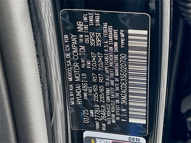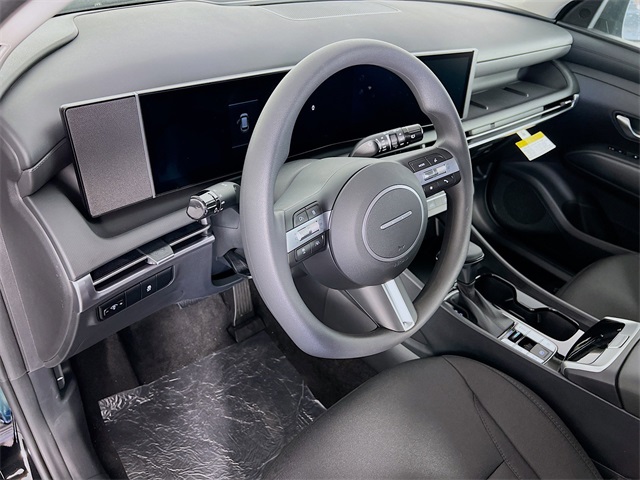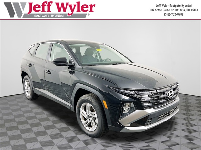 Phantom Black 2025 Hyundai Tucson SE 2.5L I4 DGI DOHC 16V LEV3-SULEV30 187hp AWD 8-Speed Automatic with SHIFTRONIC 24/30 City/Highway MPG Jeff Wyler Eastgate Auto Mall is pumped up to offer this outstanding-looking 2025 Hyundai Tucson SE in Phantom Black. Well equipped with: Option Group 01, 17 Alloy Wheels, 4-Wheel Disc Brakes, 6 Speakers, ABS brakes, Air Conditioning, Alloy wheels, AM/FM radio: SiriusXM, Apple CarPlay & Android Auto, Auto High-beam Headlights, Brake assist, Bumpers: body-color, Cargo Tray, Carpeted Floor Mats, Delay-off headlights, Driver door bin, Driver vanity mirror, Dual front impact airbags, Dual front side impact airbags, Electronic Stability Control, Emergency communication system: Bluelink+, First Aid Kit, Four wheel independent suspension, Front anti-roll bar, Front Bucket Seats, Front Center Armrest, Front reading lights, Fully automatic headlights, Illuminated Door Sill Plates, Illuminated entry, Low tire pressure warning, Occupant sensing airbag, Outside temperature display, Overhead airbag, Overhead console, Panic alarm, Passenger door bin, Passenger vanity mirror, Power door mirrors, Power steering, Power windows, Radio data system, Radio: AM/FM/HD Audio System, Rear anti-roll bar, Rear Bumper Applique, Rear reading lights, Rear seat center armrest, Rear side impact airbag, Rear window defroster, Rear window wiper, Remote keyless entry, Security system, Speed control, Split folding rear seat, Spoiler, Stain & Odor Resistant Cloth Seat Trim, Steering wheel mounted audio controls, Tachometer, Telescoping steering wheel, Tilt steering wheel, Traction control, Trip computer, and Variably intermittent wipers. 24/30 City/Highway MPG