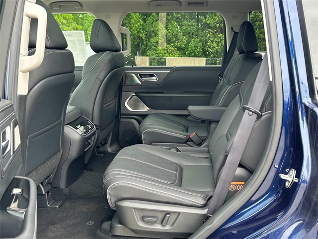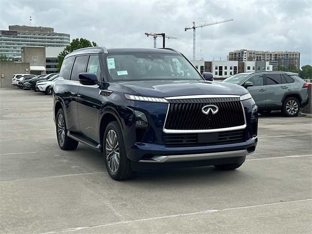 3rd row seats: bench, 4-Wheel Disc Brakes, ABS brakes, Adaptive suspension, Air Conditioning, Alloy wheels, AM/FM radio: SiriusXM with 360L, Anti-whiplash front head restraints, Apple CarPlay/Android Auto, Audio memory, Auto High-beam Headlights, Auto tilt-away steering wheel, Auto-dimming door mirrors, Auto-dimming Rear-View mirror, Auto-leveling suspension, Automatic temperature control, Brake assist, Bumpers: body-color, Center Front Spoiler, Climate Controlled Front Bucket Seats w/Massage, Compass, Delay-off headlights, Driver door bin, Driver vanity mirror, Dual front impact airbags, Dual front side impact airbags, Electronic Stability Control, Emergency communication system: INFINITI InTouch, Four wheel independent suspension, Front anti-roll bar, Front Bucket Seats, Front Center Armrest, Front dual zone A/C, Front reading lights, Fully automatic headlights, Garage door transmitter: myQ Connected Garage, Genuine wood dashboard insert, Genuine wood door panel insert, Heads-Up Display, Heated door mirrors, Heated front seats, Heated rear seats, Heated steering wheel, HVAC memory, Illuminated entry, Knee airbag, Leather steering wheel, Literature Kit, Low tire pressure warning, Memory seat, Navigation system: Google Built-in, Occupant sensing airbag, Outside temperature display, Overhead airbag, Overhead console, Panic alarm, Passenger door bin, Passenger vanity mirror, Power door mirrors, Power driver seat, Power Liftgate, Power moonroof, Power passenger seat, Power steering, Power windows, Premium Paint, Radio data system, Radio: Klipsch Reference Premiere Audio System, Rain sensing wipers, Rear air conditioning, Rear anti-roll bar, Rear reading lights, Rear seat center armrest, Rear window defroster, Rear window wiper, Reclining 3rd row seat, Remote keyless entry, Security system, Semi-Aniline Premium Leather Seating Surfaces, Speed control, Speed-sensing steering, Split folding rear seat, Spoiler, Steering wheel memory, Steering wheel mounted audio controls, Tachometer, Telescoping steering wheel, Tilt steering wheel, Traction control, Trip computer, Turn signal indicator mirrors, Variably intermittent wipers, Ventilated front seats, Ventilated rear seats, Wheels: 22 x 8 Cast Aluminum Alloy.2025 INFINITI QX80 SENSORY Grand Blue 4WD 9-Speed Automatic 3.5L V6 DOHC 24V