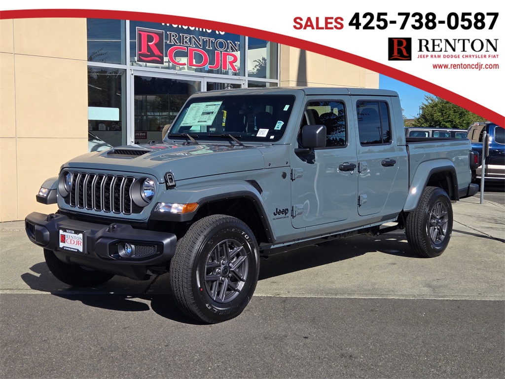 At Chrysler Dodge Jeep RAM Fiat of Renton the price you see advertised is the price you pay.Sport S $3,250 off MSRP! 4WD 8-Speed Automatic 3.6L V6 24V VVT 2025 Jeep Gladiator Sport S Anvil Clearcoat MSRP is the Manufacturer's Suggested Retail Price (MSRP) of the vehicle. Price does not include taxes, fees or other charges, including a $150 negotiable dealer documentary fee. All vehicles are subject to prior sale. Pricing and availability may vary based on a variety of factors, including options, dealer, specials, fees, and financing qualifications. Consult your dealer for actual price and complete details. Vehicles shown may have optional equipment at additional cost. The estimated selling price that appears after calculating dealer offers is for informational purposes, only. You may not qualify for the offers, incentives, discounts, or financing. Offers, incentives, discounts, or financing are subject to expiration and other restrictions. See dealer for qualifications and complete details. Images, prices, and options shown, including vehicle color, trim, options, pricing and other specifications are subject to availability, incentive offerings, current pricing and credit worthiness. In transit means that vehicles have been built, but have not yet arrived at your dealer. Images shown may not necessarily represent identical vehicles in transit to your dealership. See your dealer for actual price, payments and complete details.$1000 - 2025 West BC Retail Bonus Cash . Exp. 01/05/2026 $2250 - 2025 National Bonus Cash . Exp. 01/05/2026