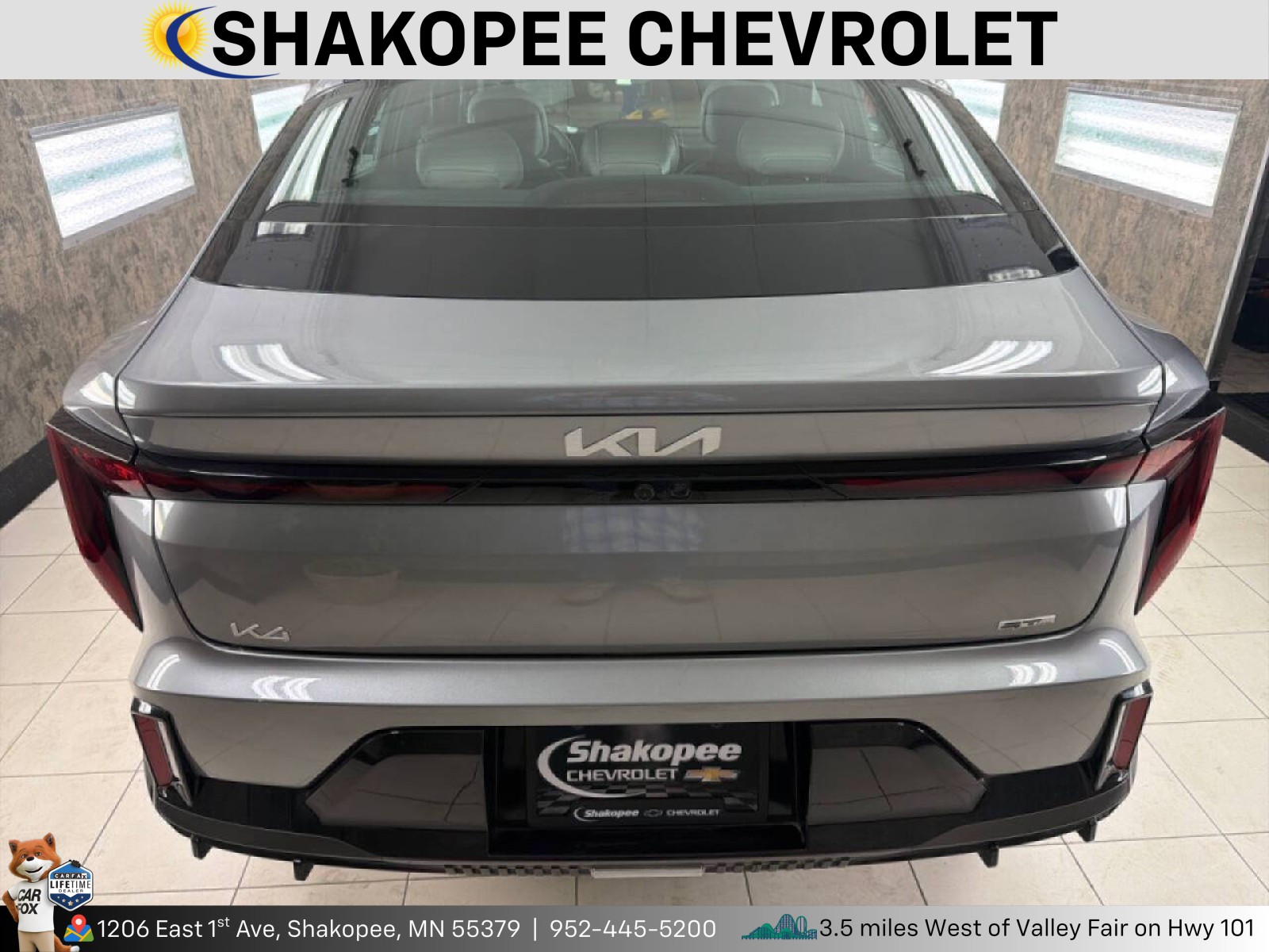 Shakopee Chevrolet is pleased to be currently offering this 2025 Kia K4 GT-Line with 6,546mi. <p>This Kia includes:</p> <p><strong style=font-size: 10pt;>Optional Equipment:</strong></p> <ul> <li><strong>Interior</strong> <ul> <li>Carpeted Floor Mats <ul> <li>Carpet front and rear floor mats</li> </ul> </li> <li>Frameless EC Mirror with Homelink <ul> <li>Auto-dimming rear view mirror</li> <li>HomeLink garage door opener</li> </ul> </li> <li>Black</li> <li>Driver's Seat and Outer-Mirrors Memory <ul> <li>Memory settings include: door mirrors</li> <li>2 memory settings</li> </ul> </li> </ul> </li> <li><strong>Convenience</strong> <ul> <li>Auto-dimming rear view mirror</li> <li>Memory settings include: door mirrors</li> <li>HomeLink garage door opener</li> </ul> </li> <li><strong>Entertainment</strong> <ul> <li>Harman/kardon Premium Audio <ul> <li>Harman/kardon speakers</li> <li>Amplifier</li> <li>8 speakers</li> </ul> </li> </ul> </li> <li><strong>Comfort</strong> <ul> <li>Ventilated driver and front passenger seats</li> <li>SynTex leatherette front seat upholstery</li> <li>Carpet front and rear floor mats</li> <li>SynTex leatherette rear seat upholstery</li> <li>2 memory settings</li> </ul> </li> <li><strong>Exterior and Appearance</strong> <ul> <li>Metallic paint</li> <li>First-row sliding and tilting glass sunroof with express open/close activation sunshade</li> </ul> </li> <li><strong>Seating</strong> <ul> <li>SynTex Seat Trim <ul> <li>SynTex leatherette front seat upholstery</li> <li>SynTex leatherette rear seat upholstery</li> </ul> </li> <li>Ventilated Front Seats <ul> <li>Ventilated driver and front passenger seats</li> </ul> </li> </ul> </li> <li><strong>Paint</strong> <ul> <li>Steel Gray <ul> <li>Metallic paint</li> </ul> </li> </ul> </li> <li><strong>Exterior</strong> <ul> <li>Door Sill Film with Graphic</li> <li>Wide Power Sunroof with Power Sunshade <ul> <li>First-row sliding and tilting glass sunroof with express open/close activation sunshade</li> </ul> </li> <li>Acoustic Windshield</li> </ul> </li> <li><strong>Additional Options</strong> <ul> <li>GT-Line Premium Package <ul> <li>Ventilated driver and front passenger seats</li> <li>Memory settings include: door mirrors</li> <li>2 memory settings</li> <li>Harman/kardon speakers</li> <li>Amplifier</li> <li>8 speakers</li> </ul> </li> <li>GT-Line Sunroof Package <ul> <li>First-row sliding and tilting glass sunroof with express open/close activation sunshade</li> </ul> </li> </ul> </li> <li><strong>In-car Entertainment</strong> <ul> <li>Harman/kardon speakers</li> <li>Amplifier</li> <li>8 speakers</li> </ul> </li> </ul> *Note - For third party subscriptions or services, please contact the dealer for more information.*<br /> <p>With its full CARFAX one-owner history report, you'll know exactly what you are getting with this well-kept Kia K4. This gently driven vehicle has been well-kept and still has the showroom shine.</p> <p>Well-equipped, well-cared for and still covered under the manufacter's factory warranty. There are other vehicles and then there is the Kia K4 GT-Line. It is one of the most unique vehicles on the market, and you would be hard pressed to find another dealer offering something quite like this Kia.</p> You can find this 2025 Kia K4 GT-Line and many others like it at Shakopee Chevrolet. <p>This is the one. Just what you've been looking for. Just what you've been looking for. With quality in mind, this vehicle is the perfect addition to take home.</p> <p>The Kia K4 GT-Line will provide you with everything you have always wanted in a car -- Quality, Reliability, and Character. You could keep looking, but why? You've found the perfect vehicle right here.</p>