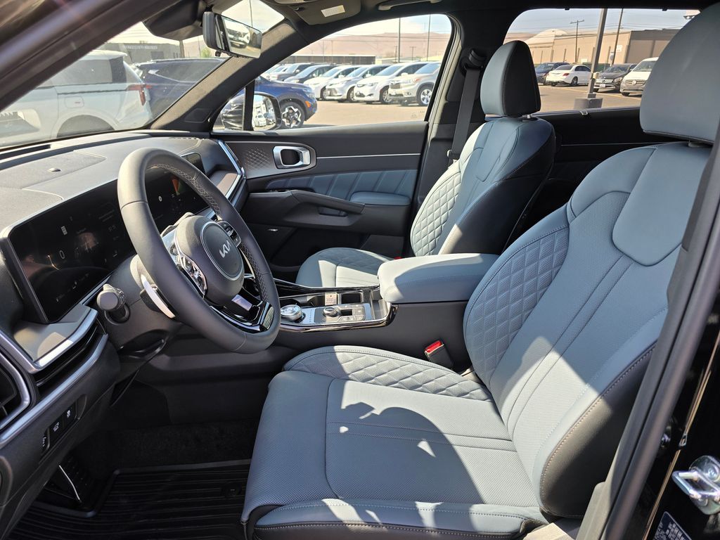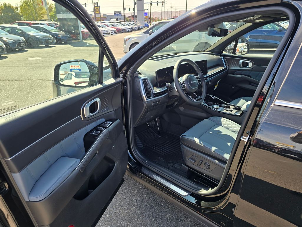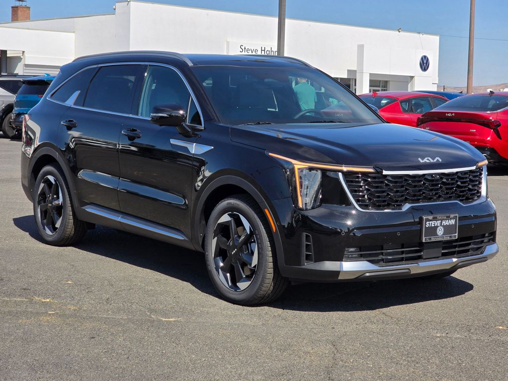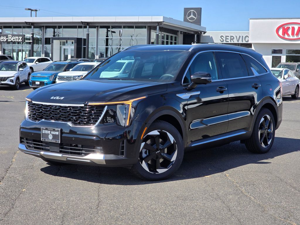 Aurora Black Pearl 2025 Kia Sorento Hybrid SX Prestige 1.6L Turbo GDI 4-Cylinder 6-Speed Automatic AWD 4D Sport Utility 1.6L Turbo GDI 4-Cylinder, 12 Speakers, 3rd row seats: split-bench, 4-Wheel Disc Brakes, ABS brakes, Air Conditioning, Alloy wheels, AM/FM radio: SiriusXM, Apple CarPlay & Android Auto, Auto High-beam Headlights, Auto-dimming Rear-View mirror, Automatic temperature control, Brake assist, Bumpers: body-color, Delay-off headlights, Driver door bin, Driver vanity mirror, Dual front impact airbags, Dual front side impact airbags, Electronic Stability Control, Emergency communication system: 911 Connect, Exterior Parking Camera Rear, Four wheel independent suspension, Front anti-roll bar, Front Bucket Seats, Front Center Armrest, Front dual zone A/C, Front fog lights, Front reading lights, Fully automatic headlights, Garage door transmitter: HomeLink, Heated & Ventilated Front Bucket Seats, Heated door mirrors, Heated front seats, Heated rear seats, Heated steering wheel, Illuminated entry, Knee airbag, Leather steering wheel, Low tire pressure warning, Memory seat, Navigation System, Occupant sensing airbag, Outside temperature display, Overhead airbag, Overhead console, Panic alarm, Passenger door bin, Passenger vanity mirror, Perforated Genuine Leather Seat Trim, Power door mirrors, Power driver seat, Power Liftgate, Power moonroof, Power passenger seat, Power steering, Power windows, Radio data system, Radio: AM/FM/SiriusXM Audio System, Rain sensing wipers, Rear air conditioning, Rear anti-roll bar, Rear reading lights, Rear window defroster, Rear window wiper, Remote keyless entry, Security system, Speed control, Speed-sensing steering, Split folding rear seat, Spoiler, Steering wheel mounted audio controls, Tachometer, Telescoping steering wheel, Tilt steering wheel, Traction control, Trip computer, Turn signal indicator mirrors, Variably intermittent wipers, Ventilated front seats, Wheels: 19 Machine-Finished Aero Alloy, 1.6L Turbo GDI 4-Cylinder. Price includes: $1000 - Sticker Sales Event Retail Bonus Cash. Exp. 01/02/2026 $2500 - KFA Dealer Choice Program: $2500 discount and 5.25% APR for 36 months. $30.08 per $1000 financed. Available to well qualified buyers who finance through Kia Finance America. 506. Exp. 01/02/2026