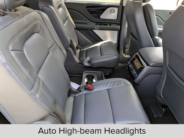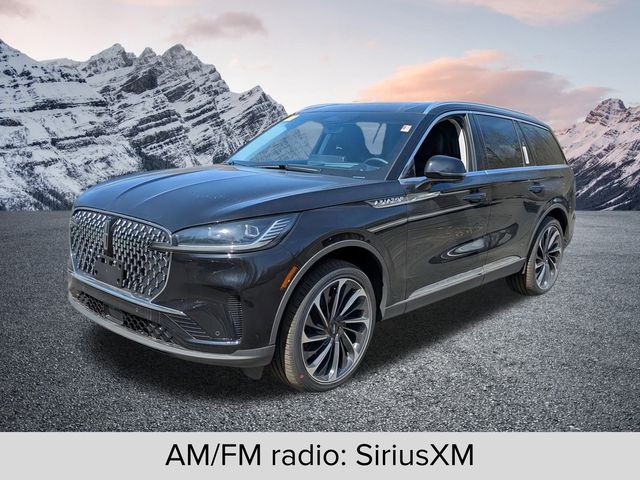 2025 Lincoln Aviator Reserve Reserve Infinite Black Metallic Clearcoat 10-Speed Automatic 3.0L V6 AWD30-Way Perfect Position Seats w/Active Motion, 40/Mini Console/40 Dual Captain's Chairs, Adaptive Dynamic Bending Lighting, Adaptive Pixel LED Headlamps, Adaptive suspension, Advanced Heads-Up Display, AM/FM radio: SiriusXM, Apple CarPlay/Android Auto, Audio memory, Auto Air Refresh, Auto High-beam Headlights, Auto-dimming Rear-View mirror, Delay-off headlights, Equipment Group 201A, Four wheel independent suspension, Front dual zone A/C, Fully automatic headlights, Heads-Up Display, Heated door mirrors, Heated front seats, Heated steering wheel, HVAC memory, Illuminated entry, Illuminated Lincoln Star in Grille, Illumination Package, Lincoln BlueCruise Equipped (4-Years Included), Lincoln Dynamic Signature Lighting, Luxury Package, Memory seat, Navigation system: Connected Navigation (1-year trial), Panic alarm, Power driver seat, Power Liftgate, Power moonroof: Panoramic Vista Roof, Power passenger seat, Power windows, Premium Lthr Heated/Ventilated Fnt Captain's Chairs, Radio: Revel Ultima 3D Audio System w/28 Speakers, Rain sensing wipers, Rear audio controls, Remote keyless entry, Security system, Speed control, Speed Dependent Lighting, Speed-Sensitive Wipers, Ventilated front seats, Wheels: 22 Bright-Machined Aluminum, Wireless Charging Pad.