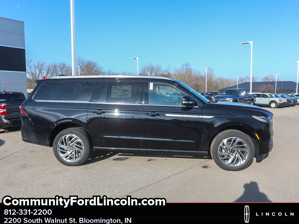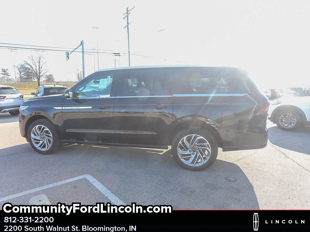 <b>Vehicle Details</b><br>Experience luxury and capability with this 2025 Lincoln Navigator L Reserve 4WD' located in Bloomington' IN. This premium SUV pairs a potent V6 3.5L Gasoline/E85 engine with refined seven-seat comfort and confident four-wheel drive performance the perfect combination for family road trips and everyday driving. The spacious Lincoln Navigator L Reserve delivers sophisticated design inside and out' generous cargo space' and a plush cabin trimmed in upscale materials. Loaded with advanced technology' this Navigator includes Adaptive Cruise Control for relaxed highway travel' Remote Start for climate-ready comfort' and a Back-Up Camera to simplify parking and maneuvering. Built-in Navigation keeps you on course with ease' while Apple CarPlay integrates your smartphone for seamless access to music' messages' and maps. Safety and convenience features are thoughtfully arranged to enhance every drive. Located in Bloomington' IN' this Lincoln Navigator L Reserve stands out with exceptional value priced to be the best deal in the area. With its combination of power' luxury' and modern tech' this SUV represents an outstanding choice for drivers seeking capability and refinement. Schedule a test drive in Bloomington today and experience why this 2025 Lincoln Navigator L Reserve 4WD with a V6 3.5L Gasoline/E85 engine is the smart' stylish option and the best-priced Navigator available.<br><br><b>Equipment</b><br>The vehicle features a hands-free Bluetooth phone system. The installed navigation system will keep you on the right path. The leather seats in this Lincoln Navigator L are a must for buyers looking for comfort' durability' and style. Apple CarPlay: Seamless smartphone integration for the vehicle - stay connected and entertained on the go! This unit has auto-adjust speed for safe following. It comes equipped with Android Auto for seamless smartphone integration on the road. Start this vehicle from inside with remote start. The Lincoln Navigator L is pure luxury with a heated steering wheel. Protect the Lincoln Navigator L from unwanted accidents with a cutting edge backup camera system. It has a V6' 3.5L high output engine. The vehicle is painted with a sleek and sophisticated black color. Load groceries and much more with ease into this Lincoln Navigator L thanks to the power liftgate. When you encounter slick or muddy roads' you can engage the four wheel drive on this vehicle and drive with confidence.<br><br><b>Packages</b><br>Equipment Group 202A Reserve II: 22 Dark Tarnished Aluminum Wheels; Auto Heated and Ventilated Premium Leather Captain's Chair; 10-Speed Automatic Transmission; 3.5L V6 Twin-Turbocharged; P275/50R22 All-Season BSW Tires; Revel Ultima 3D AM/FM/HD Audio System. **Equipment listed is based on original vehicle build and subject to change. Please confirm the accuracy of the included equipment by calling the dealer prior to purchase.**<br><br><b>Additional Information</b><br>Please call 812-331-2200 for more information or to schedule your test drive. The price displayed includes available Lincoln AFS incentives and does not include $237 documentation fee. Please visit us at 2200 S Walnut St in Bloomington' or at www.lincolnofbloomington.net