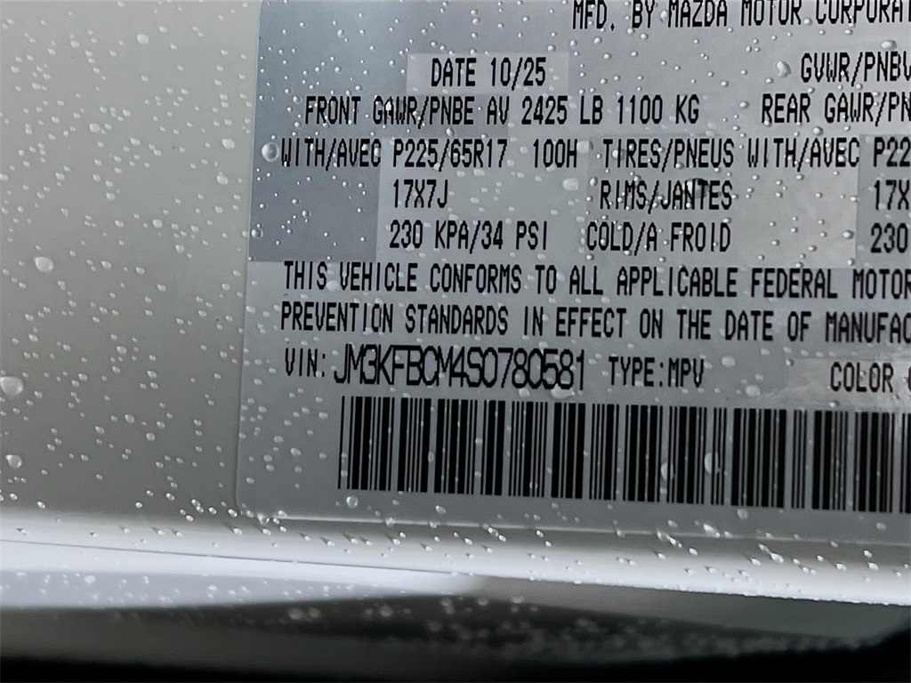 Rhodium White Metallic 2025 Mazda CX-5 2.5 S Preferred Package AWD 6-Speed Automatic SKYACTIV 2.5L 4-Cylinder DOHC 16V Rhodium White Metallic, Rear Bumper Guard, Leather Seat Trim, Cargo Net, 2.5L SKYACTIV-G DOHC 16-Valve 4-Cylinder Engine, SKYACTIV-Drive 6-Speed Automatic Transmission, Heated Front Bucket Seats, Infotainment System Voice Command, SMS Text Msg Audio Delivery and Reply, Radio Broadcast Data System Program Information, MAZDA CONNECT Infotainment System, E911 Automatic Emergency Notification, Multifunction Commander Control, AM/FM/HD Audio System, Aluminum Alloy Wheels.26/30 City/Highway MPGTax, Title, Registration, $250.00 Documentation Fee, and any optional dealer installed accessories are not included in this price. Price includes: $2500 - Customer Cash. Exp. 03/02/2026