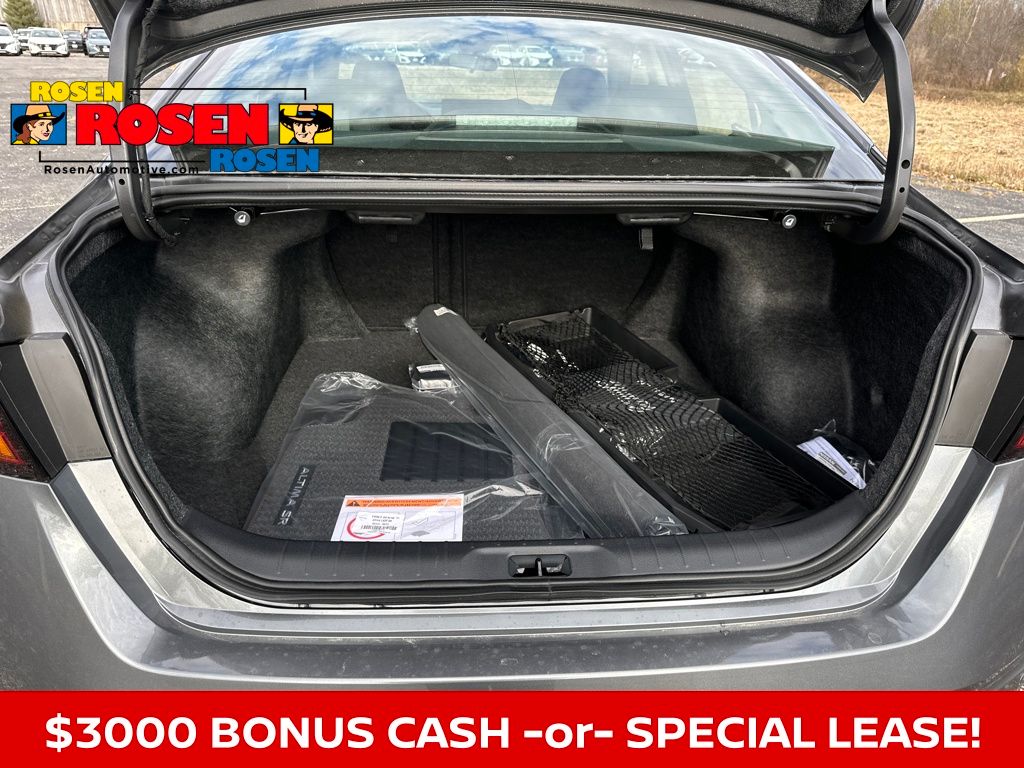 CVT with Xtronic, 2-Way Driver Power Lumbar Support, 4-Way Power Passenger Seat, ABS brakes, Alloy wheels, AM/FM radio: SiriusXM, Blind Spot Warning, Body-Colored Splash Guards, Dual Zone Automatic HVAC, Electronic Stability Control, Fully automatic headlights, Heated Front Seats, Illuminated Kick Plates, Leather-Appointed Seat Trim, NissanConnect, NissanConnect featuring Apple CarPlay and Android Auto, Power door mirrors, Power driver seat, Power steering, Power windows, Premium Sport Interior Finishers, Rear Parking Sensors, Remote Engine Start w/Intelligent Climate Control, Remote keyless entry, Security system, Single Panel Moonroof, Speed control, Split folding rear seat, SR Floor Mats/Trunk Mat/Hideaway Nets, SR Premium Package, Steering wheel mounted audio controls, Telescoping steering wheel, Tilt steering wheel, Traction control, Trip computer, Trunk Organizer Tray, USB Charging Cable Set - Nissan, Variably intermittent wipers. 27/37 City/Highway MPG 2025 Nissan Altima 2.5 SRRosen, Rosen, Rosen! Proudly serving the communities of Greenfield, Milwaukee, West Allis, Menomonee Falls, Kenosha, Racine, Waukesha, Glendale, St. Francis, Oak Creek, South Milwaukee, and Greendale since 1989!! 5510 S 27th Street Milwaukee Wis. Price includes: $3000 - Nissan MY25 Bonus Cash. Exp. 03/02/2026