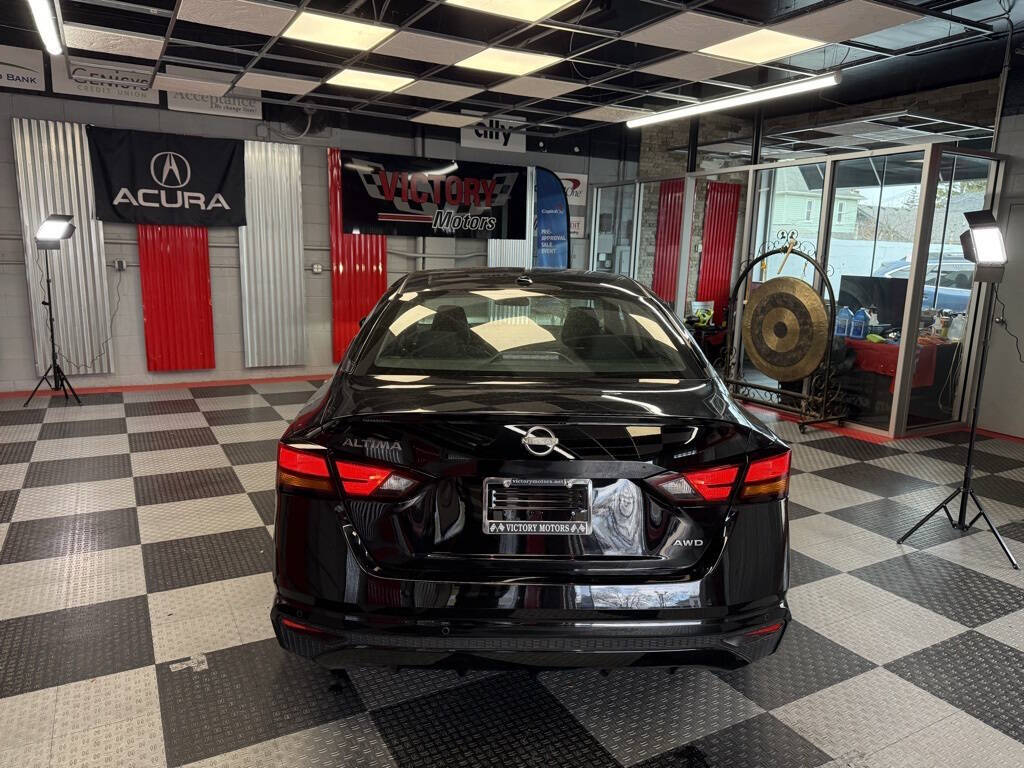 Victory Motors was founded on trust, integrity, and respect. We are proud to have these values in our sales and business practices so our customers keep coming back. Your satisfaction is our #1 priority!<br /><br />Clean Title Only! Every Vehicle Comes Fully Safety Inspected!<br /><br /><br />Priced below KBB Fair Purchase Price!<br /><br /><br />Super Black Clearcoat 2025 Nissan Altima 2.5 SV AWD CVT with Xtronic 2.5L 4-Cylinder DOHC 16V<br /><br />CVT with Xtronic, 17'' Machined Alloy Wheels, 4-Wheel Disc Brakes, 6 Speakers, ABS brakes, Air Conditioning, Alloy wheels, AM/FM radio: SiriusXM, Auto High-beam Headlights, Blind Spot Warning, Brake assist, Bumpers: body-color, Cloth Seat Trim, Delay-off headlights, Driver door bin, Driver vanity mirror, Dual front impact airbags, Dual front side impact airbags, Electronic Stability Control, Floor Mats/Trunk Mat/Hideaway Net, Four wheel independent suspension, Front anti-roll bar, Front Bucket Seats, Front Center Armrest, Front reading lights, Fully automatic headlights, Illuminated entry, Knee airbag, Low tire pressure warning, NissanConnect featuring Apple CarPlay and Android Auto, Occupant sensing airbag, Outside temperature display, Overhead airbag, Overhead console, Panic alarm, Passenger door bin, Passenger vanity mirror, Power door mirrors, Power driver seat, Power steering, Power windows, Radio data system, Radio: AM/FM Audio System, Rear anti-roll bar, Rear Parking Sensors, Rear reading lights, Rear seat center armrest, Rear side impact airbag, Rear window defroster, Remote keyless entry, Security system, Speed control, Speed-sensing steering, Speed-Sensitive Wipers, Split folding rear seat, Steering wheel mounted audio controls, Tachometer, Telescoping steering wheel, Tilt steering wheel, Traction control, Trip computer, Variably intermittent wipers, CVT with Xtronic.<br /><br /><br />Odometer is 15583 miles below market average!<br /><br />25/34 City/Highway MPG 25/34 City/Highway MPG