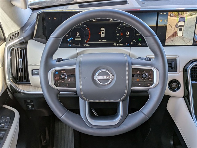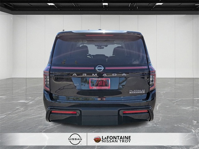 Super Black 2025 Nissan Armada Platinum Reserve 4WD 9-Speed Automatic 3.5L DOHC Alloy Wheels, Apple Carplay/Android Auto, Automatic Emergency Braking, Backup Camera, Blind Spot Monitor, Bluetooth, Brake Assist, Cooled Seats, Heated Seats, Homelink, Lane Departure Warning, Leather Seats, LED Headlights, Memory Seat, Navigation System, Rear Cross Traffic Alert, Remote Start, Stability Control, Active LaneManagement System, Adaptive CruiseControl with Stop and Go, Advanced BrakeAssist, Heated Rear Seats, Armada Platinum Reserve, 4D Sport Utility, 3.5L DOHC, 9-Speed Automatic, 4WD, Super Black, Steel Leather. Price includes: $1500 - Nissan MY25 Armada Bonus Cash. Exp. 02/02/2026