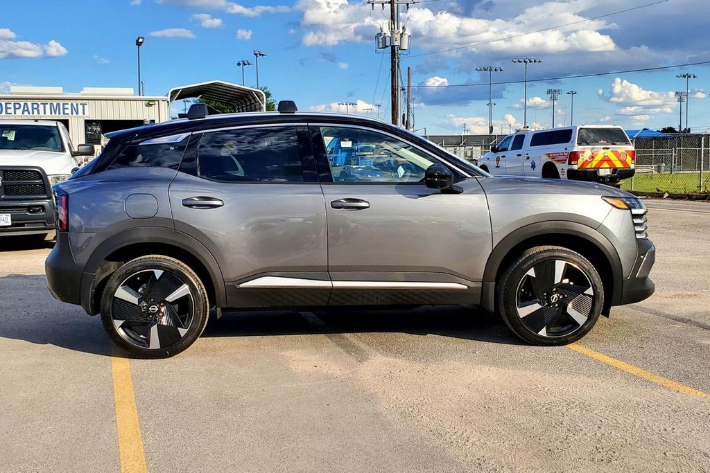 2025 Nissan Kicks SR Illumination Package (Illuminated Cargo Scuff Plate and Illuminated Kickplates), Interior Electronics Package (Door Pocket Light, Frameless Auto-Dimming Mirror w/HomeLink, and Interior Ambient Lighting), 17 Alloy Wheels, 19 Alloy Wheels, 2-Tone Paint, 4-Wheel Disc Brakes, 6 Speakers, ABS brakes, Air Conditioning, Alloy wheels, AM/FM radio: Sirius, Auto High-beam Headlights, Automatic temperature control, Brake assist, Bumpers: body-color, Carpeted Floor Mats & Underfloor Protector, Crossbars, Delay-off headlights, Driver door bin, Driver vanity mirror, Dual front impact airbags, Dual front side impact airbags, Electronic Stability Control, Exterior Ground Lighting w/Logo, Front anti-roll bar, Front Bucket Seats, Front Center Armrest, Front reading lights, Front wheel independent suspension, Fully automatic headlights, Illuminated entry, Knee airbag, Leather Shift Knob, Leather steering wheel, Low tire pressure warning, Occupant sensing airbag, Outside temperature display, Overhead airbag, Overhead console, Panic alarm, Passenger door bin, Passenger vanity mirror, Power door mirrors, Power steering, Power windows, Radio data system, Radio: AM/FM Audio System, Rear anti-roll bar, Rear reading lights, Rear seat center armrest, Rear side impact airbag, Rear window defroster, Rear window wiper, Remote keyless entry, Security system, Speed control, Speed-sensing steering, Splash Guards, Split folding rear seat, Spoiler, Sport Cloth/Leatherette Seat Trim, Sport steering wheel, Steering wheel mounted audio controls, Tachometer, Telescoping steering wheel, Tilt steering wheel, Traction control, Trip computer, Turn signal indicator mirrors, Variably intermittent wipers, and Wireless Apple CarPlay/Wireless Android Auto. 28/35 City/Highway MPG