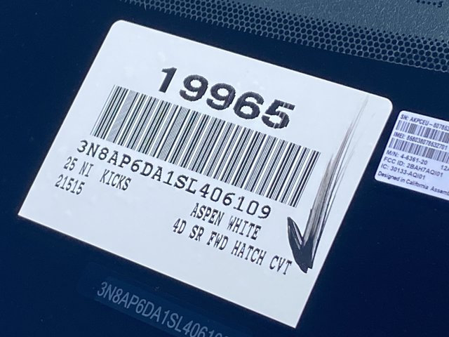 Delivers 35 Highway MPG and 28 City MPG! This Nissan Kicks boasts a Regular Unleaded I-4 2.0 L/122 engine powering this Variable transmission. SPORT, CLOTH/LEATHERETTE SEAT TRIM, ASPEN WHITE TRICOAT, [W02] WHEELS: 19 ALLOY -inc: Type A, Tires: 225/45R19 AS.* This Nissan Kicks Features the Following Options *[E09] PREMIUM PAINT, [B93] CROSSBARS, [B92] SPLASH GUARDS, Wheels: 17 Alloy, Vehicle Dynamic Control (VDC) Electronic Stability Control (ESC), Variable Intermittent Wipers, Trip Computer, Transmission: Xtronic CVT (Continuously Variable), Transmission w/Driver Selectable Mode and Oil Cooler, Traction Control System (TCS) ABS And Driveline Traction Control.* Visit Us Today *Stop by Riverside Nissan located at 8330 Indiana Ave, Riverside, CA 92504 for a quick visit and a great vehicle!