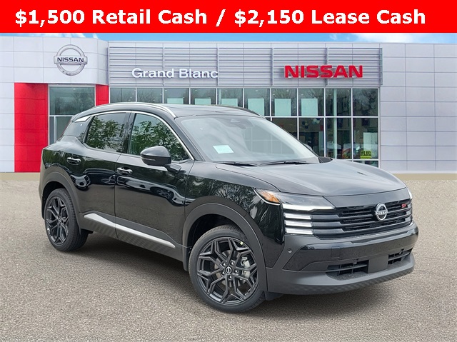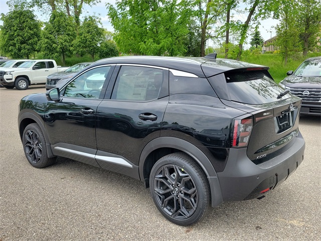 Super Black 2025 Nissan Kicks SR AWD CVT with Xtronic 2.0L DOHC 17 Alloy Wheels, 4-Wheel Disc Brakes, 6 Speakers, ABS brakes, Air Conditioning, Alloy wheels, AM/FM radio: Sirius, Auto High-beam Headlights, Automatic temperature control, Bose 10 -Speaker Audio, Brake assist, Bumpers: body-color, Carpeted Floor Mats, Delay-off headlights, Driver door bin, Driver Seat-Mounted Supplemental Air Bag, Driver vanity mirror, Dual front impact airbags, Dual front side impact airbags, Electronic Stability Control, Four wheel independent suspension, Front anti-roll bar, Front Bucket Seats, Front Center Armrest, Front reading lights, Fully automatic headlights, Heated door mirrors, Heated Front Seats, Heated Steering Wheel, Illuminated entry, Knee airbag, Leather Shift Knob, Leather steering wheel, Low tire pressure warning, Occupant sensing airbag, Outside temperature display, Overhead airbag, Overhead console, Panic alarm, Panoramic Moonroof, Passenger door bin, Passenger vanity mirror, Power door mirrors, Power steering, Power windows, Radio data system, Radio: AM/FM Audio System, Rain Sensing Wipers, Rear anti-roll bar, Rear reading lights, Rear seat center armrest, Rear side impact airbag, Rear window defroster, Rear window wiper, Remote Engine Start, Remote keyless entry, Security system, Speed control, Speed-sensing steering, Splash Guards, Split folding rear seat, Spoiler, Sport Cloth/Leatherette Seat Trim, Sport steering wheel, SR Premium Package, Steering wheel mounted audio controls, Tachometer, Telescoping steering wheel, Tilt steering wheel, Traction control, Trip computer, Turn signal indicator mirrors, Variably intermittent wipers, Wheels: 19 Dark Gray Alloy, Wireless Apple CarPlay/Wireless Android Auto.27/34 City/Highway MPG