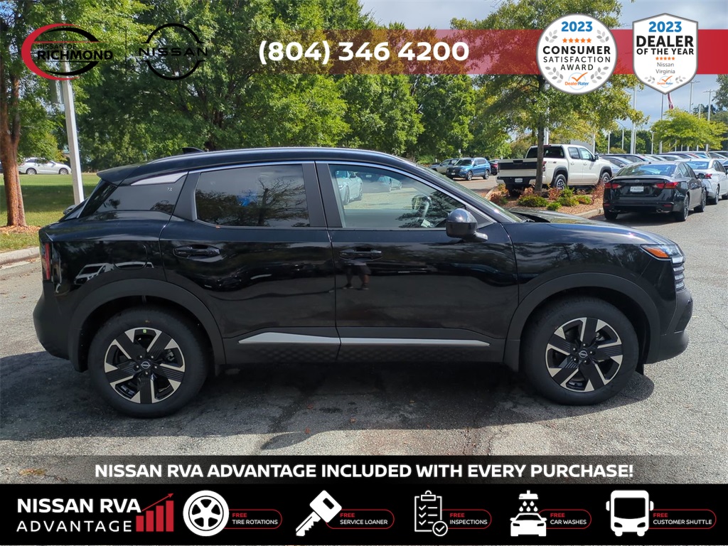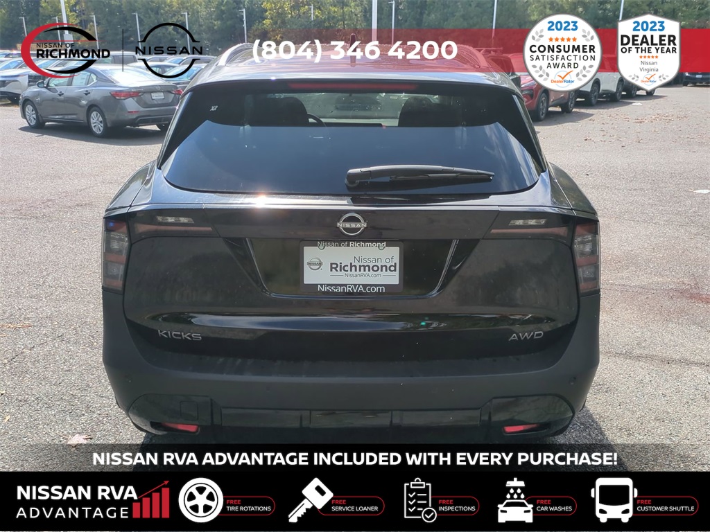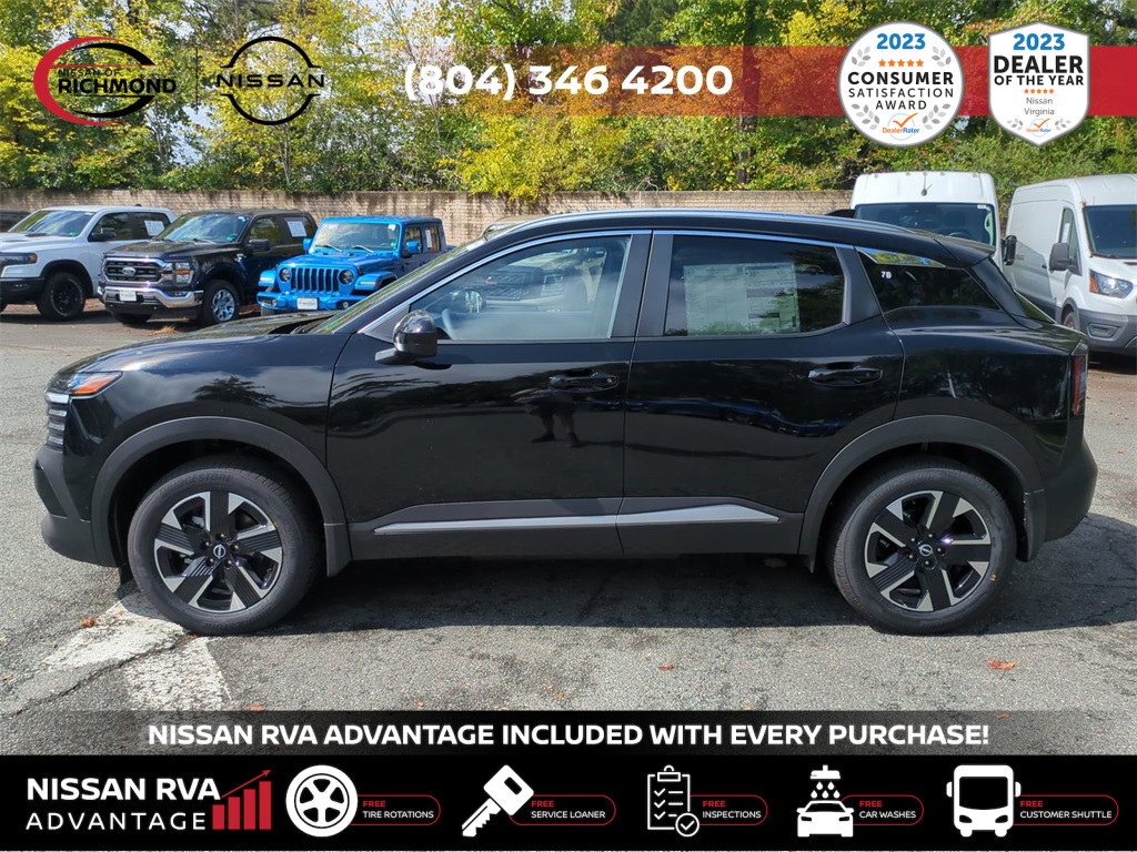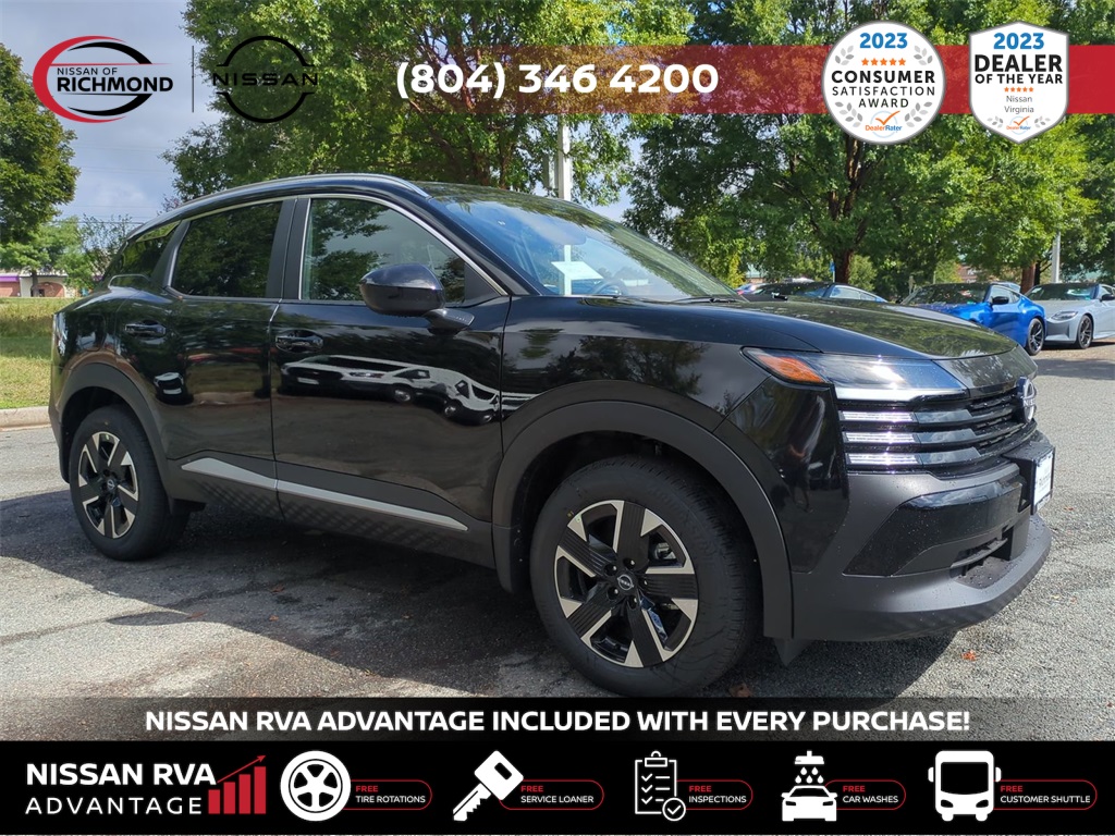 2025 Nissan Kicks SVTHIS MONTH AN EXTRA $1,000 FOR TRADE ASSISTANCE! ***NISSAN RVA ADVANTAGE PROGRAM***- -FREE Service Loaners- -FREE Customer Shuttles- -FREE Car Washes- -FREE Tire Rotations- -FREE Multi Point Inspections- -FREE Va. State Inspections- With the purchase of any new vehicle, you will enjoy the NISSAN RVA ADVANTAGE !!! See dealer for details.- Our Promises to You We will respect your time. We will market our products and services honestly. We will employ a professional, well-trained and knowledgeable staff. We will maintain a clean, comfortable and modern facility. We will offer only products and services that meet your needs. We will provide clear explanations of all pricing and paperwork. We will deliver your vehicle clean with a full explanation of features. We will treat you as a guest in our home.17 Alloy Wheels, 4 Speakers, 4-Wheel Disc Brakes, ABS brakes, Air Conditioning, Alloy wheels, AM/FM radio: Sirius, Auto High-beam Headlights, Blind Spot Warning, Brake assist, Bumpers: body-color, Cloth Seat Trim, Driver door bin, Driver vanity mirror, Dual front impact airbags, Dual front side impact airbags, Electronic Stability Control, Four wheel independent suspension, Front anti-roll bar, Front Bucket Seats, Front Center Armrest, Front reading lights, Fully automatic headlights, Heated door mirrors, Illuminated entry, Knee airbag, Low tire pressure warning, Occupant sensing airbag, Outside temperature display, Overhead airbag, Panic alarm, Passenger door bin, Passenger vanity mirror, Power door mirrors, Power steering, Power windows, Radio data system, Radio: AM/FM Audio System, Rear anti-roll bar, Rear Parking Sensors, Rear reading lights, Rear side impact airbag, Rear window defroster, Rear window wiper, Remote keyless entry, Security system, Speed control, Speed-sensing steering, Split folding rear seat, Spoiler, Sport steering wheel, Steering wheel mounted audio controls, Tachometer, Telescoping steering wheel, Tilt steering wheel, Traction control, Trip computer, Variably intermittent wipers, and Wireless Apple CarPlay/Wireless Android Auto. Price includes: $1000 - Nissan MY25 New Kicks (SV and SR) Retail/Lease Bonus Cash. Exp. 01/05/2026