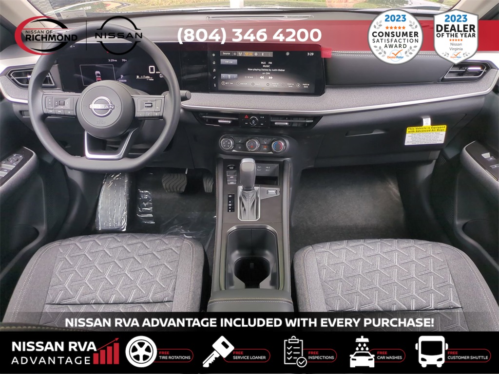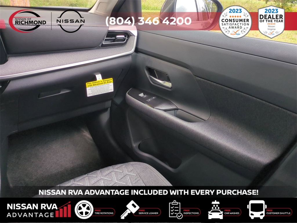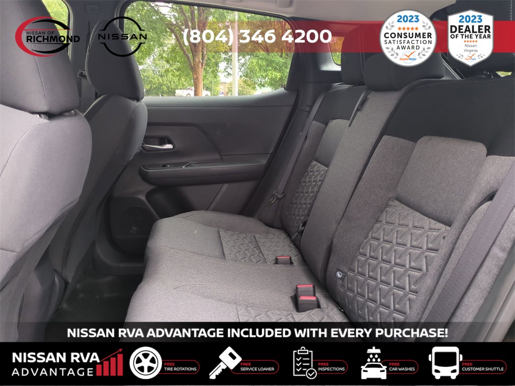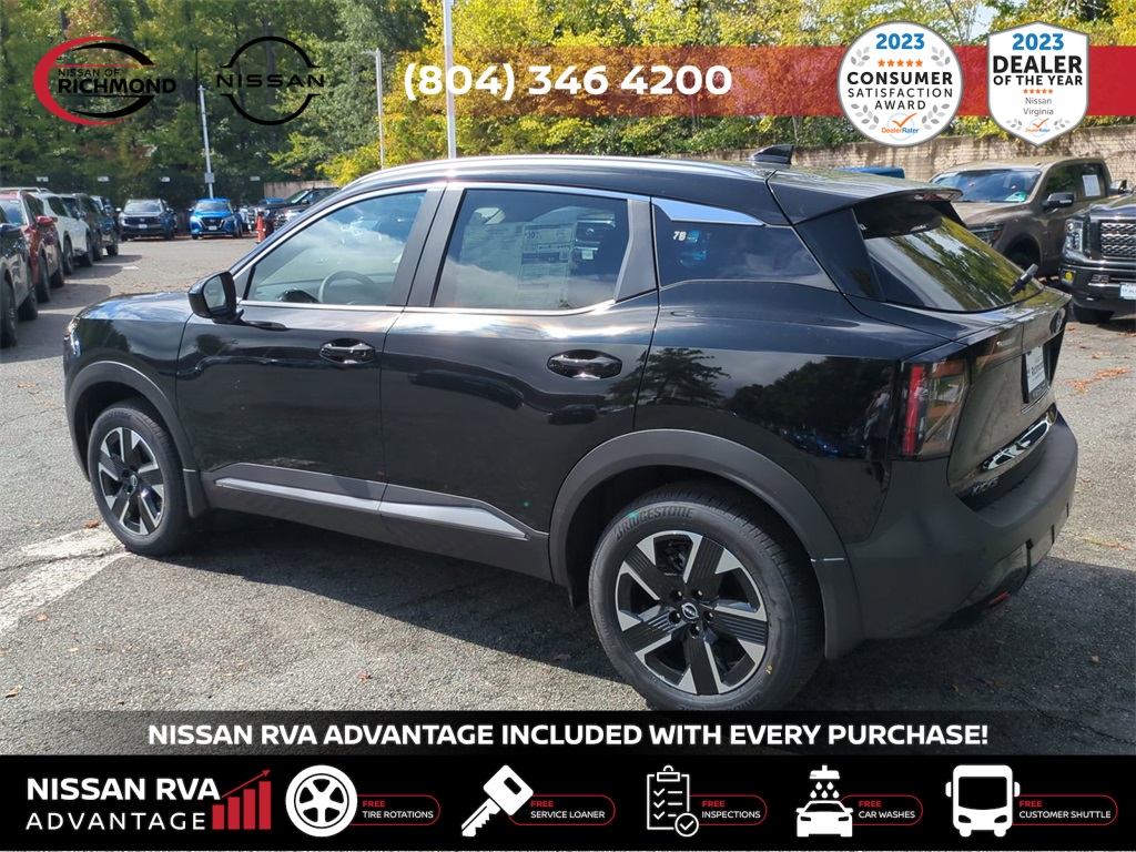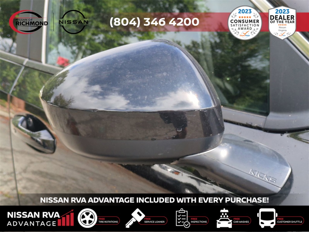 2025 Nissan Kicks SVTHIS MONTH AN EXTRA $1,000 FOR TRADE ASSISTANCE! ***NISSAN RVA ADVANTAGE PROGRAM***- -FREE Service Loaners- -FREE Customer Shuttles- -FREE Car Washes- -FREE Tire Rotations- -FREE Multi Point Inspections- -FREE Va. State Inspections- With the purchase of any new vehicle, you will enjoy the NISSAN RVA ADVANTAGE !!! See dealer for details.- Our Promises to You We will respect your time. We will market our products and services honestly. We will employ a professional, well-trained and knowledgeable staff. We will maintain a clean, comfortable and modern facility. We will offer only products and services that meet your needs. We will provide clear explanations of all pricing and paperwork. We will deliver your vehicle clean with a full explanation of features. We will treat you as a guest in our home.17 Alloy Wheels, 4 Speakers, 4-Wheel Disc Brakes, ABS brakes, Air Conditioning, Alloy wheels, AM/FM radio: Sirius, Auto High-beam Headlights, Blind Spot Warning, Brake assist, Bumpers: body-color, Cloth Seat Trim, Driver door bin, Driver vanity mirror, Dual front impact airbags, Dual front side impact airbags, Electronic Stability Control, Four wheel independent suspension, Front anti-roll bar, Front Bucket Seats, Front Center Armrest, Front reading lights, Fully automatic headlights, Heated door mirrors, Illuminated entry, Knee airbag, Low tire pressure warning, Occupant sensing airbag, Outside temperature display, Overhead airbag, Panic alarm, Passenger door bin, Passenger vanity mirror, Power door mirrors, Power steering, Power windows, Radio data system, Radio: AM/FM Audio System, Rear anti-roll bar, Rear Parking Sensors, Rear reading lights, Rear side impact airbag, Rear window defroster, Rear window wiper, Remote keyless entry, Security system, Speed control, Speed-sensing steering, Split folding rear seat, Spoiler, Sport steering wheel, Steering wheel mounted audio controls, Tachometer, Telescoping steering wheel, Tilt steering wheel, Traction control, Trip computer, Variably intermittent wipers, and Wireless Apple CarPlay/Wireless Android Auto. Price includes: $1000 - Nissan MY25 New Kicks (SV and SR) Retail/Lease Bonus Cash. Exp. 01/05/2026