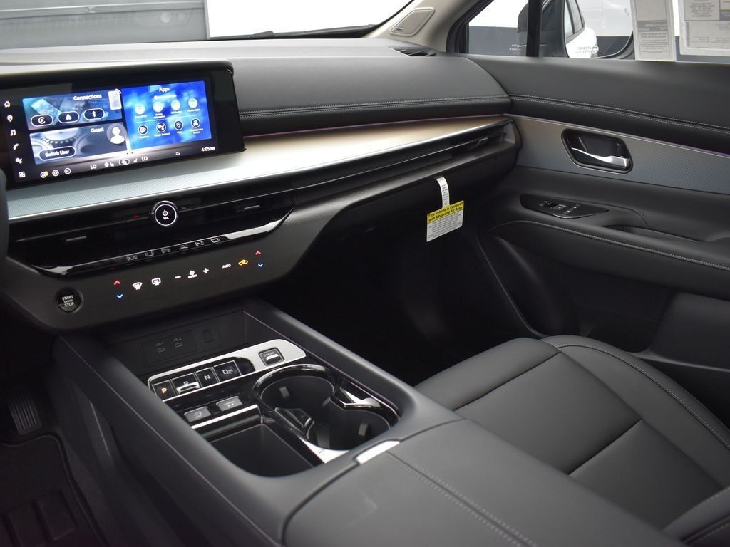2025 Nissan Murano SL AWD SUV3.5L V6 with Xtronic CVT and Intelligent AWD; 24 MPG combinedrefined, spacious midsize crossover.Key FeaturesEntertainment: 9 NissanConnect with Navigation, Bluetooth streaming, SiriusXM, handsfree text, Bose Premium Audio (11 speakers), USBA/USBC ports.Safety: Nissan Safety Shield 360 ADASAutomatic Emergency Braking w/ Pedestrian Detection, Rear Automatic Braking, Blind Spot Warning, Rear CrossTraffic Alert, Lane Departure Warning, High Beam Assist, Intelligent Forward Collision Warning, RearView Monitor, rear sonar.Interior/Exterior & Packages: Leatherappointed seats, heated front seats, heated steering wheel, 8way power driver with memory, trizone climate, panoramic moonroof, motionactivated power liftgate; 18 alloy wheels, LED headlights/taillights, roof rails. Packages: Splash Guards, Carpeted Floor/Cargo Mats, Premium Paint.Everest White Pearl Tricoat 2025 Nissan Murano SL AWD 9-Speed Automatic I4 9-Speed Automatic, AWD, 10 Speakers, 20 Alloy Wheels, 3-Position Cargo Area Protector, 4-Wheel Disc Brakes, ABS brakes, Air Conditioning, Alloy wheels, AM/FM radio: SiriusXM w/360L, Auto High-beam Headlights, Auto-dimming Rear-View mirror, Automatic temperature control, Brake assist, Bumpers: body-color, Cargo Net, Cargo Package, Carpeted Floor & Cargo Mats, Child-Seat-Sensing Airbag, Compass, Delay-off headlights, Driver door bin, Driver vanity mirror, Dual front impact airbags, Dual front side impact airbags, Electronic Stability Control, Emergency communication system: NissanConnect Services, First Aid Kit, Four wheel independent suspension, Frameless Rearview Mirror w/UGDO, Front anti-roll bar, Front Bucket Seats, Front Center Armrest, Front dual zone A/C, Front reading lights, Fully automatic headlights, Garage door transmitter: myQ Connected Garage, Grained Splash Guards, Heated door mirrors, Heated Front Bucket Seats, Heated front seats, Heated steering wheel, Illuminated entry, Illuminated Kick Plates, Knee airbag, Low tire pressure warning, Memory seat, Navigation system: NissanConnect with Navigation and Services, Occupant sensing airbag, Outside temperature display, Overhead airbag, Overhead console, Panic alarm, Passenger door bin, Passenger vanity mirror, Power door mirrors, Power driver seat, Power Liftgate, Power moonroof: Panoramic, Power passenger seat, Power steering, Power windows, Premium Paint, PVC (Leatherette) Seat Trim, Radio data system, Radio: NissanConnect w/Hybrid Radio, Rear anti-roll bar, Rear reading lights, Rear seat center armrest, Rear side impact airbag, Rear window defroster, Rear window wiper, Remote keyless entry, Retractable Cargo Cover, Security system, Speed control, Speed-Sensitive Wipers, Split folding rear seat, Spoiler, Steering wheel mounted audio controls, Tachometer, Telescoping steering wheel, Tilt steering wheel, Traction control, Trip computer, Turn signal indicator mirrors, Variably intermittent wipers, Wireless Apple CarPlay/Wireless Android Auto, 9-Speed Automatic, AWD.21/27 City/Highway MPG Price includes: $5000 - Nissan Customer Cash. Exp. 02/02/2026
