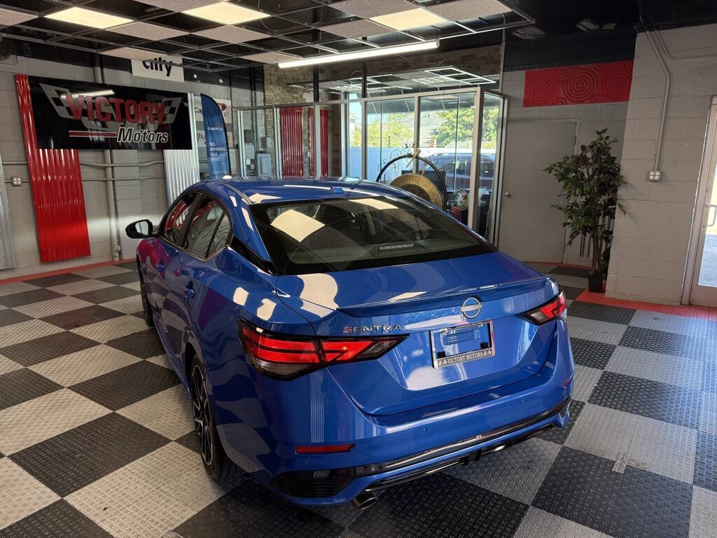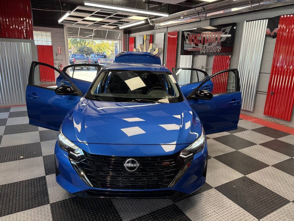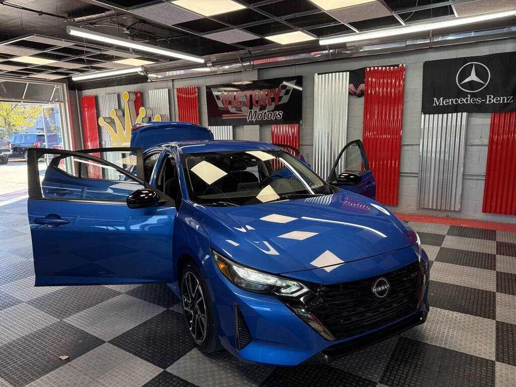 Victory Motors was founded on trust, integrity, and respect. We are proud to have these values in our sales and business practices so our customers keep coming back. Your satisfaction is our #1 priority!<br /><br />Clean Title Only! Every Vehicle Comes Fully Safety Inspected!<br /><br /><br />Priced below KBB Fair Purchase Price!<br /><br /><br />Electric Blue Metallic 2025 Nissan Sentra SR FWD CVT with Xtronic 2.0L I4 DOHC<br /><br />CVT with Xtronic, Sport Cloth, 18'' Alloy Wheels, 4-Wheel Disc Brakes, 6-Way Power Driver's Seat, 8 Speakers, ABS brakes, Air Conditioning, Alloy wheels, AM/FM radio: SiriusXM, Auto High-beam Headlights, Automatic temperature control, Blind Spot Warning, Brake assist, Bumpers: body-color, Delay-off headlights, Driver door bin, Driver vanity mirror, Dual front impact airbags, Dual front side impact airbags, Electronic Stability Control, Four wheel independent suspension, Front anti-roll bar, Front Bucket Seats, Front Center Armrest, Front dual zone A/C, Front reading lights, Fully automatic headlights, Heated door mirrors, Heated Front Bucket Seats, Heated front seats, Illuminated entry, Intelligent Around View Monitor (I-AVM), Knee airbag, Leather Heated Steering Wheel, Leather Shift Knob, Leatherette Seat Trim, Low tire pressure warning, NissanConnect featuring Apple CarPlay and Android Auto, NissanConnect Services, Occupant sensing airbag, Outside temperature display, Overhead airbag, Overhead console, Panic alarm, Passenger door bin, Passenger vanity mirror, Power door mirrors, Power steering, Power windows, Radio data system, Rear anti-roll bar, Rear Parking Sensors, Rear seat center armrest, Rear side impact airbag, Rear window defroster, Remote keyless entry, Security system, Speed control, Speed-sensing steering, Split folding rear seat, Spoiler, Sport Cloth Seat Trim, SR Premium Package, Steering wheel mounted audio controls, Tachometer, Telescoping steering wheel, Tilt steering wheel, Traction control, Trip computer, Turn signal indicator mirrors, Variably intermittent wipers, Wi-Fi Hotspot, CVT with Xtronic, Sport Cloth.<br /><br /><br />30/38 City/Highway MPG 30/38 City/Highway MPG