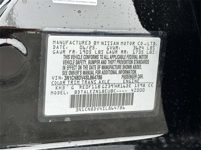 Super Black 2025 Nissan Versa 1.6 S 1.6L I4 DOHC 16V CVT FWD This Dazzling vehicle comes equipped with 2 keys. Price includes: $750 - Nissan MY25 Versa Bonus Cash (All Markets) - December. Exp. 01/05/2026