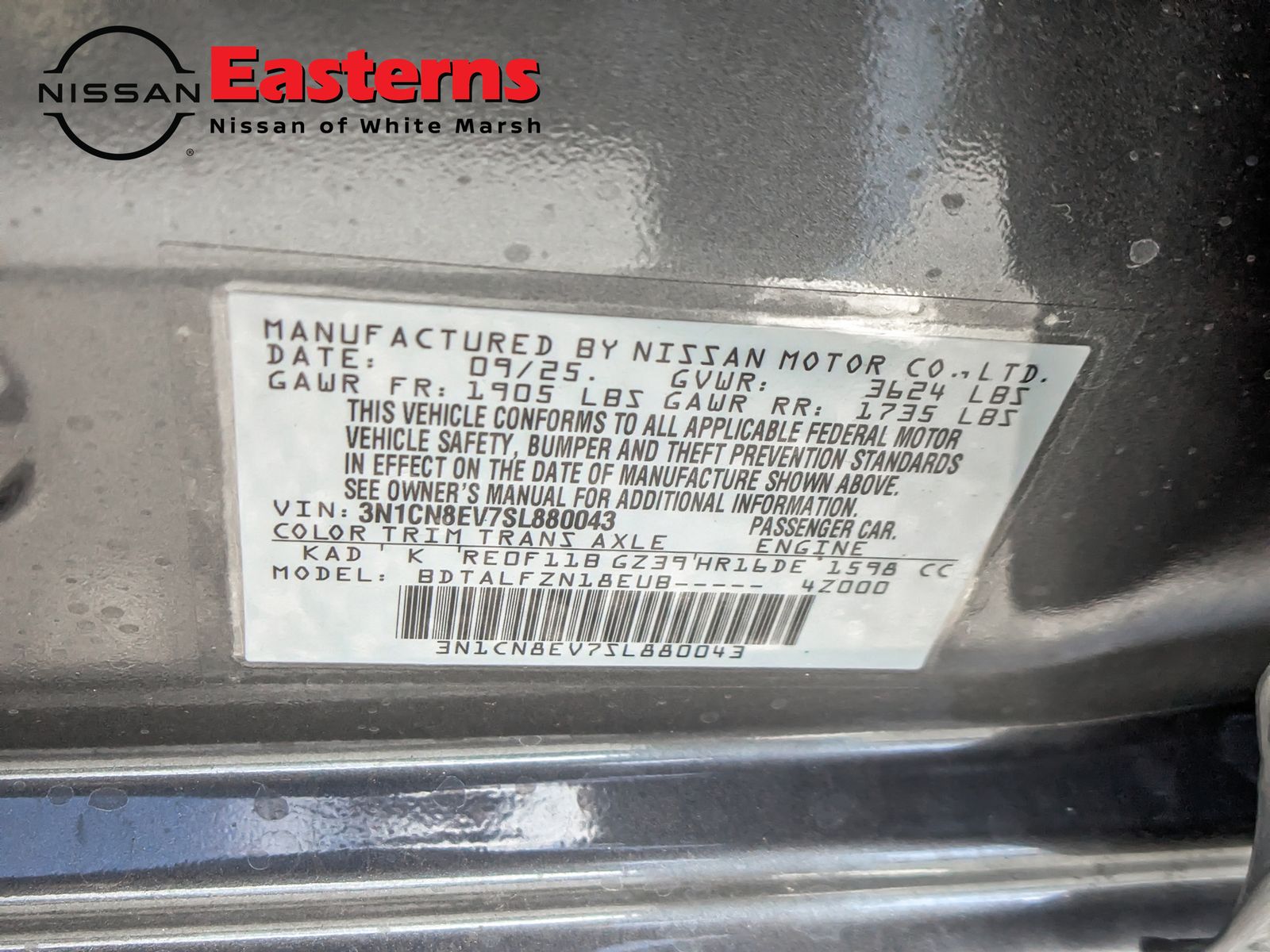 Price includes: $750 - Nissan MY25 Versa Bonus Cash. Exp. 02/02/2026 Factory MSRP: $22,350 $2,515 off MSRP! Gun Metallic 2025 Nissan Versa 1.6 SV FWD CVT 1.6L I4 DOHC 16VDiscover Easterns Nissan of White Marsh. Our dedication to surpassing any price, rate, service offer, and every trade is reserved for new Nissan inventory and valid offers from approved Nissan dealers. Elevate your expectations our commitment to excellence defines the Nissan experience!Easterns Nissan of White Marsh, powered by Easterns Automotive Group, operates with an 'open inventory' system, allowing for seamless transfer and purchase of any car from our ten convenient dealerships across Washington DC, Maryland, and Virginia. With over 1000 cars in our inventory, Visit us in Sterling, VA | Alexandria, VA | Temple Hills, MD | Frederick, MD | Hyattsville, MD | Laurel, MD | Glen Burnie, MD | Baltimore, MD | White Marsh, MD| West Baltimore, MD.