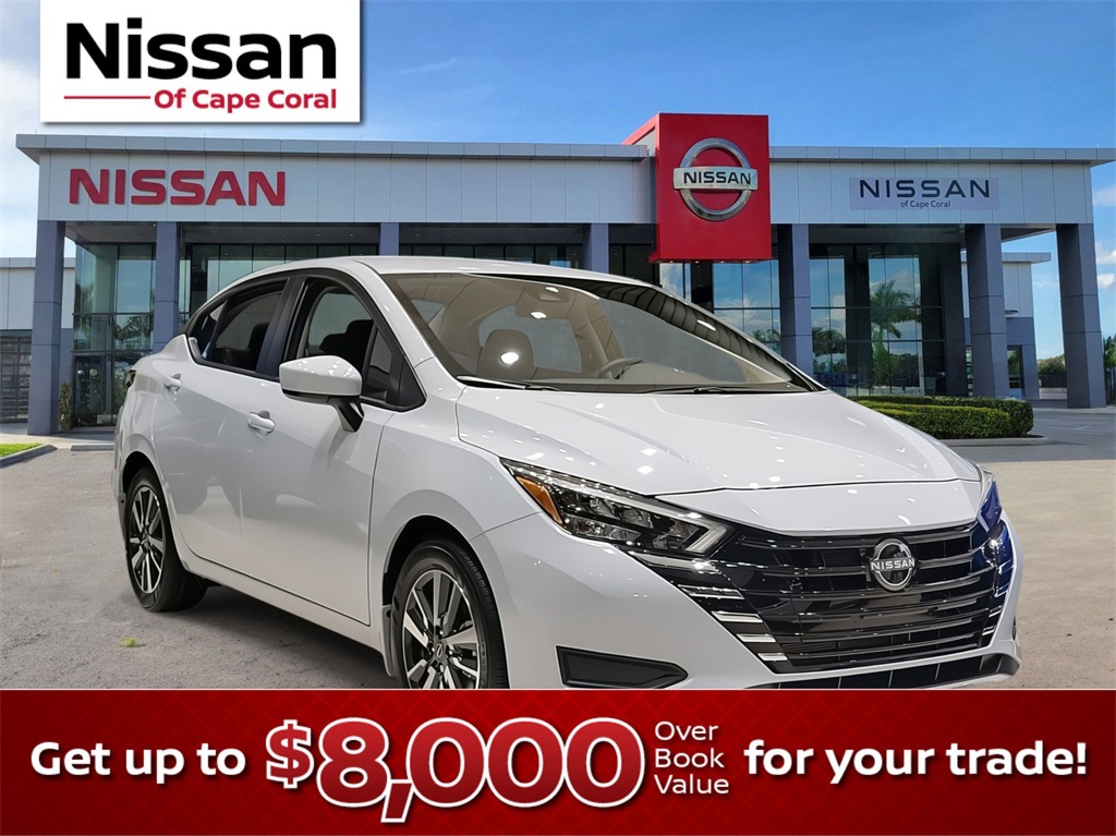 Dealer Discount of $3,301 off MSRP 32/40 City/Highway MPGPearl 2025 Nissan Versa 1.6 SV FWD CVT 1.6L I4 DOHC 16VTrunk Package (Shopping Bag Hooks and Trunk Net), 16 Aluminum Alloy Wheels, 4 Speakers, ABS brakes, Air Conditioning, Alloy wheels, Apple CarPlay/Android Auto, Auto High-beam Headlights, Blind Spot Warning, Brake assist, Bumpers: body-color, Carpeted Floor Mats & Trunk Mat (5-Piece Set), Delay-off headlights, Driver door bin, Driver vanity mirror, Dual front impact airbags, Dual front side impact airbags, Electronic Stability Control, Front anti-roll bar, Front Bucket Seats, Front Center Armrest, Front reading lights, Front wheel independent suspension, Fully automatic headlights, Heated door mirrors, Illuminated entry, Knee airbag, Low tire pressure warning, Occupant sensing airbag, Outside temperature display, Overhead airbag, Panic alarm, Passenger door bin, Passenger vanity mirror, Power door mirrors, Power steering, Power windows, Premium Paint, Radio data system, Radio: AM/FM Audio System, Rear Parking Sensors, Rear side impact airbag, Rear window defroster, Remote keyless entry, Speed control, Splash Guards, Split folding rear seat, Steering wheel mounted audio controls, Tachometer, Telescoping steering wheel, Tilt steering wheel, Traction control, Trip computer, Upgraded Cloth Seat Trim, and Variably intermittent wipers.**Dealership advertised price is plus tax, tag, title, pre-delivery service fee of $1299, Private Tag Agency Fee of $298, and Electronic Registration Filing Fee of $599.95. These charges represent costs and profits to the dealer for cleaning, inspecting, reconditioning vehicles, and preparing documents related to the sale. All Pre-owned vehicle pricing plus Optional Platinum Premier of $2,399.98. All Pre-owned vehicles may also be subject to additional reconditioning and certification fees. All advertised pricing is on in-stock units only and are subject to change without notice. Advertised pricing includes all manufacturers discounts, rebates, and incentives such as military, college grad, all loyalty offers, and VPP pricing certificates which qualification of terms is required to guarantee before mentioned discounts. All offers are contingent on financing through the Manufacturer captive lender, NMAC. While every reasonable effort is made to ensure the accuracy of this information, we are not responsible for any errors or omissions contained on these pages. Please verify any information in question with the dealer. See dealer for details. ***Loyalty discount includes any customer who has bought three or more vehicles from Cape Coral Nissan in the last 7 years. Price includes: $750 - Nissan MY25 Bonus Cash