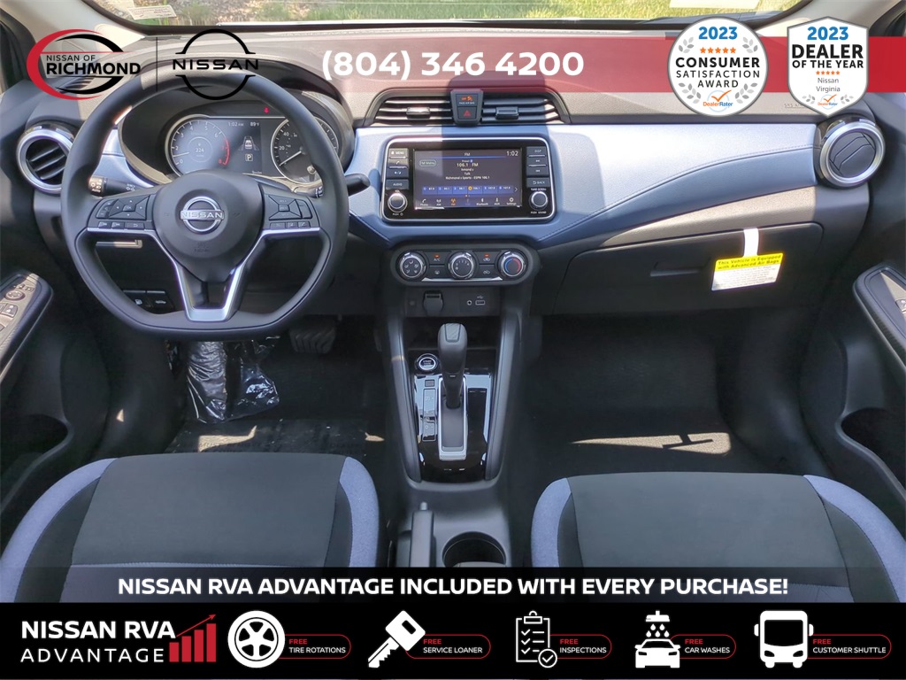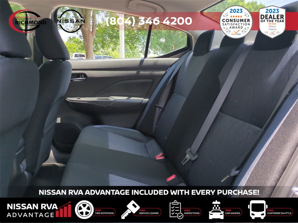 2025 Nissan Versa 1.6 SVTHIS MONTH AN EXTRA $1,000 FOR TRADE ASSISTANCE! ***NISSAN RVA ADVANTAGE PROGRAM***- -FREE Service Loaners- -FREE Customer Shuttles- -FREE Car Washes- -FREE Tire Rotations- -FREE Multi Point Inspections- -FREE Va. State Inspections- With the purchase of any new vehicle, you will enjoy the NISSAN RVA ADVANTAGE !!! See dealer for details.- Our Promises to You We will respect your time. We will market our products and services honestly. We will employ a professional, well-trained and knowledgeable staff. We will maintain a clean, comfortable and modern facility. We will offer only products and services that meet your needs. We will provide clear explanations of all pricing and paperwork. We will deliver your vehicle clean with a full explanation of features. We will treat you as a guest in our home.16 Aluminum Alloy Wheels, 4 Speakers, ABS brakes, Air Conditioning, Alloy wheels, Apple CarPlay/Android Auto, Auto High-beam Headlights, Blind Spot Warning, Brake assist, Bumpers: body-color, Delay-off headlights, Driver door bin, Driver vanity mirror, Dual front impact airbags, Dual front side impact airbags, Electronic Stability Control, Front anti-roll bar, Front Bucket Seats, Front Center Armrest, Front reading lights, Front wheel independent suspension, Fully automatic headlights, Heated door mirrors, Illuminated entry, Knee airbag, Low tire pressure warning, Occupant sensing airbag, Outside temperature display, Overhead airbag, Panic alarm, Passenger door bin, Passenger vanity mirror, Power door mirrors, Power steering, Power windows, Radio data system, Radio: AM/FM Audio System, Rear Parking Sensors, Rear side impact airbag, Rear window defroster, Remote keyless entry, Speed control, Split folding rear seat, Steering wheel mounted audio controls, Tachometer, Telescoping steering wheel, Tilt steering wheel, Traction control, Trip computer, Upgraded Cloth Seat Trim, and Variably intermittent wipers. Price includes: $750 - Nissan MY25 Versa Bonus Cash (All Markets) - December. Exp. 01/05/2026