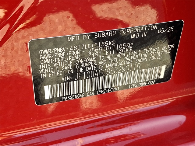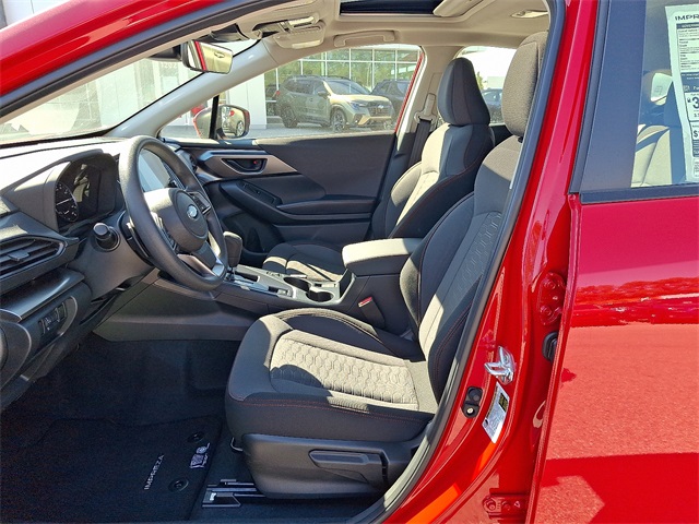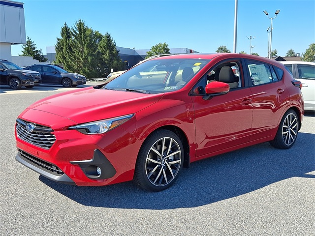 Pure Red 2025 Subaru Impreza Sport AWDAndroid Auto, AWD, Bluetooth, Apple Car Play, Rear Back-up Camera, Black Cloth, All Weather Package, Blind Spot Detection (BSD), BSD/RCTA & All Weather Pkg & Power Moonroof, Dual-Mode Heated Front Seats, Heated Exterior Power Mirrors, Power Moonroof, Rear Cross-Traffic Alert (RCTA) System, Sun Visors w/Vanity Mirror & Lights, Windshield Wiper De-Icer. 27/34 City/Highway MPG