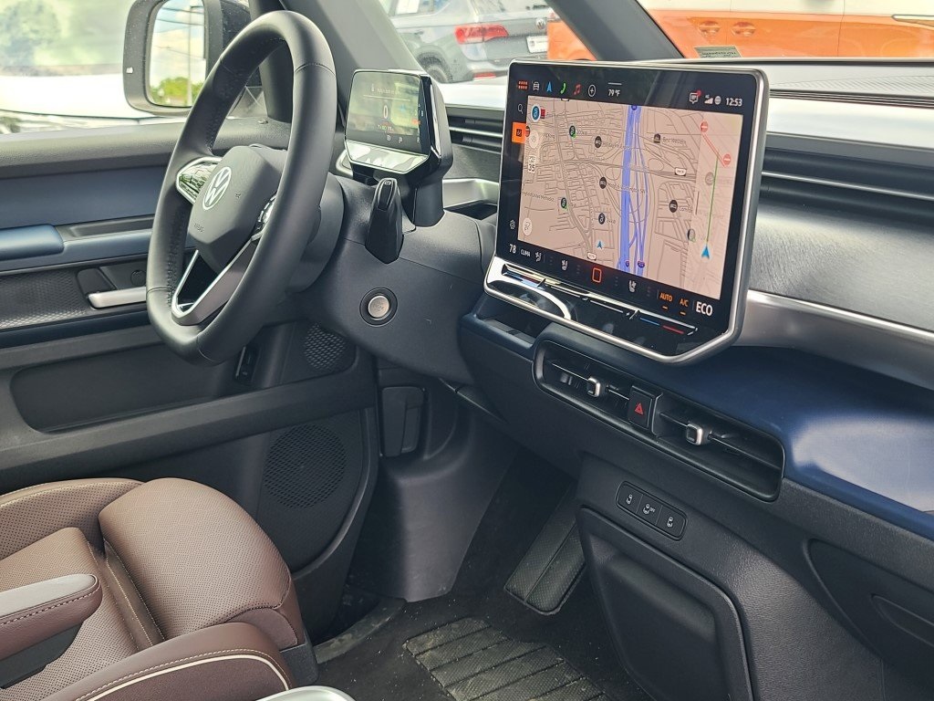 The 3-row ID. Buzz has a range of 234 miles with RWD and 231 miles with AWD.