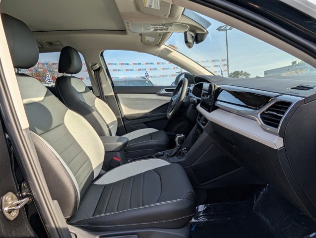 Price includes: $1000 - Customer Bonus. Exp. 01/05/2026 $2000 - Retail Customer Bonus. Exp. 01/05/2026 *ANTWERPEN 20YR/200K WARRANTY*. Black 2025 Volkswagen Taos 1.5T SEL AWD 8-Speed Automatic with Tiptronic 4-Wheel Disc Brakes, ABS brakes, Active Blind Spot Monitor, Air Conditioning, Alloy wheels, AM/FM radio: SiriusXM with 360L, Auto High-beam Headlights, Auto-dimming Rear-View mirror, Automatic temperature control, Brake assist, Bumpers: body-color, Compass, Delay-off headlights, Driver door bin, Driver vanity mirror, Dual front impact airbags, Dual front side impact airbags, Electronic Stability Control, Emergency communication system: VW Car-Net Safe & Secure 5-year, Exterior Parking Camera Rear, Four wheel independent suspension, Front anti-roll bar, Front Bucket Seats, Front Center Armrest, Front dual zone A/C, Front reading lights, Front Strut Rear Multi-Link Suspension, Fully automatic headlights, Heated & Actively Ventilated Front Bucket Seats, Heated door mirrors, Heated front seats, Heated steering wheel, Illuminated entry, Leather Shift Knob, Low tire pressure warning, Navigation system: VW Car-Net Guide & Inform, Occupant sensing airbag, Outside temperature display, Overhead airbag, Overhead console, Panic alarm, Passenger door bin, Passenger vanity mirror, Perforated Vienna Leather Seating Surfaces, Power door mirrors, Power driver seat, Power moonroof, Power steering, Power windows, Radio data system, Radio: MIB3 Discover Media AM/FM/HD, Rain sensing wipers, Rear anti-roll bar, Rear seat center armrest, Rear window defroster, Rear window wiper, Remote keyless entry, Security system, Speed control, Speed-sensing steering, Split folding rear seat, Spoiler, Steering wheel mounted audio controls, Tachometer, Telescoping steering wheel, Tilt steering wheel, Traction control, Trip computer, Variably intermittent wipers, Ventilated front seats, and Wheels: 19 2-Tone Machined Alloy. 1.5L I4 Turbocharged DOHC 16V LEV3-SULEV30 174hp 25/33 City/Highway MPGPrices include all incentives, some which require financing through VCI MSRP may be subject to market-based pricing, please see https://jacksaysyes.com/marketbasedpricing for details.