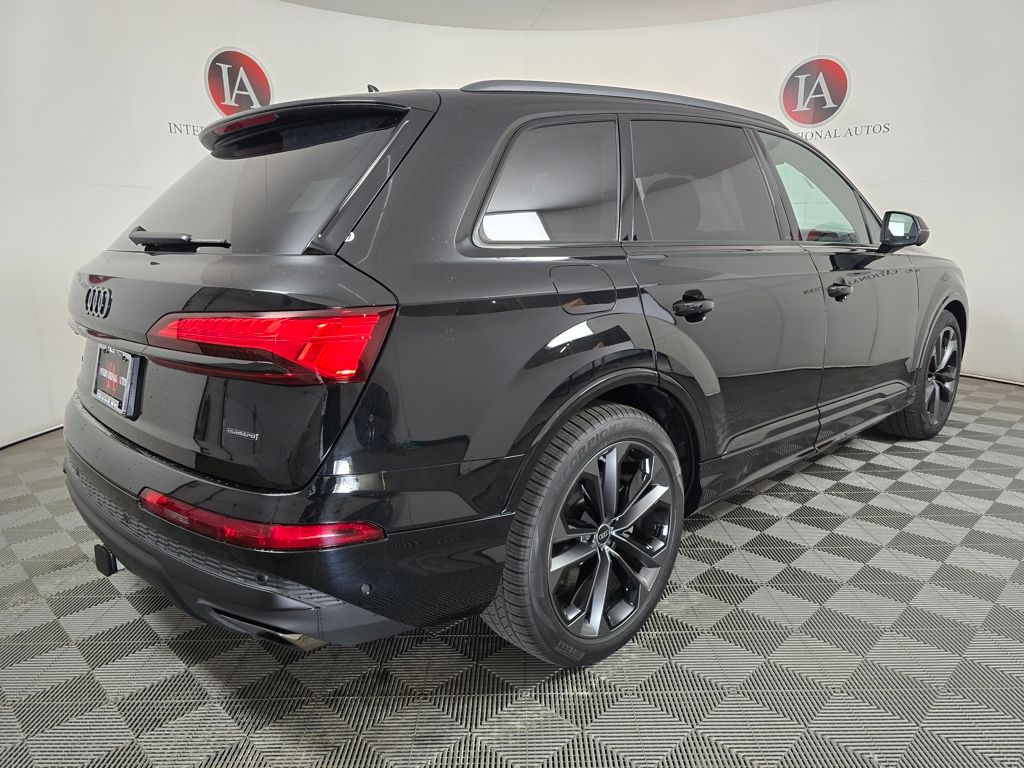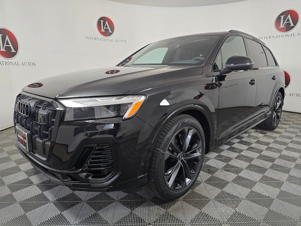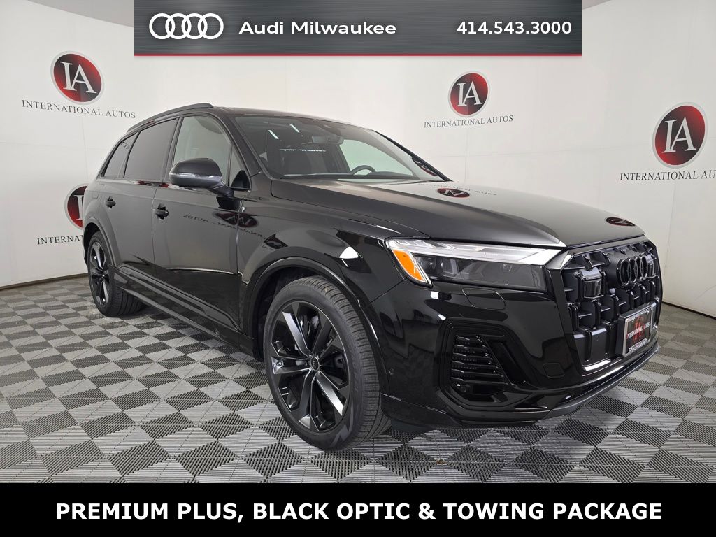 Mythos Black Metallic 2026 Audi Q7 55 Premium Plus quattro quattro 8-Speed Automatic with Tiptronic 3.0L TFSI 3rd row seats: bench, 4-Way Power Lumbar For Passenger Seat, 7-Pin Adapter, 7700 lbs Towing Capacity, Active Cruise Control, Adaptive Air Suspension, Anthracite Gray Audi Rings, Auto High-beam Headlights, Auto-dimming Rear-View mirror, Bang & Olufsen Premium Sound System with 3D Sound, Black Door Blades, Black Exterior Trim, Black Grille, Black Optic Package, Black Roof Rails, Black Wheel Center Caps, Black Window Surrounds, Control Buttons in Gloss Black with Haptic Feedback, Dark Chrome Exhaust Tips, Dual-Pane Acoustic Glass For Side Windows, Exterior Parking Camera Rear, Four-Zone Automatic Climate Control, Heated Front Bucket Seats, Heated Rear Seats, Heated Steering Wheel, Illuminated Door Sills, Leather Seating Surfaces, LED Interior Lighting Plus Package, Memory seat, Navigation system: Audi MMI Navigation plus with Touch Response, Power Liftgate, Power moonroof: Panoramic, Power Soft-Closing Doors, Premium Plus Package, Rain sensing wipers, Rear Door/Side Windows and Tailgate Sunshades, Top View Camera System with Virtual 360 View, Trailer Hitch, Ventilation For Front Seats, Wheels: 21 5-Double-Spoke-Module-Design with Matte Gray Finish.**SALE PRICE INCLUDES IA SPRING KICK OFF INCENTIVE.**