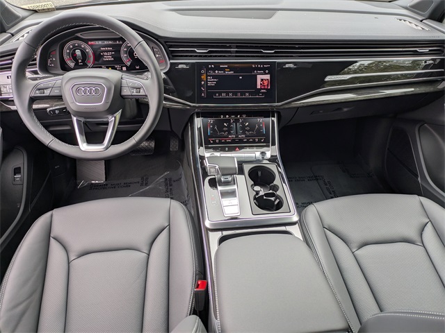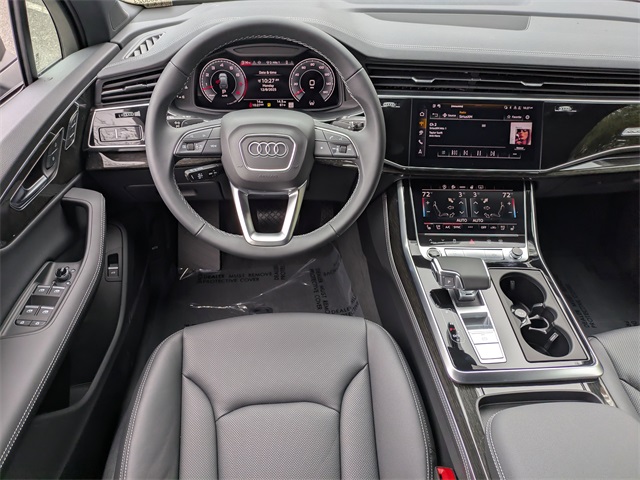 2026 Audi Q7 55 Premium Plus 4-Way Power Lumbar For Passenger Seat, 7-Pin Adapter, 7700 lbs Towing Capacity, Adaptive Air Suspension, Anthracite Gray Audi Rings, Bang & Olufsen Premium Sound System with 3D Sound, Black Door Blades, Black Exterior Trim, Black Grille, Black Optic Package, Black Roof Rails, Black Wheel Center Caps, Black Window Surrounds, Control Buttons in Gloss Black with Haptic Feedback, Dark Chrome Exhaust Tips, Dual-Pane Acoustic Glass For Side Windows, Four-Zone Automatic Climate Control, Heated Rear Seats, Heated Steering Wheel, Illuminated Door Sills, LED Interior Lighting Plus Package, Navigation system: Audi MMI Navigation plus with Touch Response, Power Soft-Closing Doors, Premium Plus Package, Rear Door/Side Windows and Tailgate Sunshades, Top View Camera System with Virtual 360 View, Trailer Hitch, Ventilation For Front Seats, Wheels: 20 5-Double-Spoke, Wheels: 21 5-Double-Spoke-Module-Design with Matte Gray Finish.Black Optic Package (Anthracite Gray Audi Rings, Black Door Blades, Black Exterior Trim, Black Grille, Black Roof Rails, Black Wheel Center Caps, Black Window Surrounds, Dark Chrome Exhaust Tips, and Wheels: 21 5-Double-Spoke-Module-Design with Matte Gray Finish), LED Interior Lighting Plus Package, Premium Plus Package (4-Way Power Lumbar For Passenger Seat, Adaptive Air Suspension, Bang & Olufsen Premium Sound System with 3D Sound, Control Buttons in Gloss Black with Haptic Feedback, Dual-Pane Acoustic Glass For Side Windows, Four-Zone Automatic Climate Control, Heated Rear Seats, Heated Steering Wheel, Illuminated Door Sills, Power Soft-Closing Doors, Rear Door/Side Windows and Tailgate Sunshades, Top View Camera System with Virtual 360 View, Ventilation For Front Seats, and Wheels: 20 5-Double-Spoke), 7-Pin Adapter, 7700 lbs Towing Capacity, Navigation system: Audi MMI Navigation plus with Touch Response, Trailer Hitch, 10 Speakers, 3rd row seats: bench, 4-Wheel Disc Brakes, ABS brakes, Air Conditioning, Alloy wheels, AM/FM radio, Audi Beam Rings, Audi Cargo Box, Audi Guard Protection Kit, Auto High-beam Headlights, Auto-dimming door mirrors, Auto-dimming Rear-View mirror, Automatic temperature control, Brake assist, Bumpers: body-color, Compass, Delay-off headlights, Driver door bin, Driver vanity mirror, Dual front impact airbags, Dual front side impact airbags, Electronic Stability Control, Emergency communication system: Audi connect CARE, Exterior Parking Camera Rear, Four wheel independent suspension, Front anti-roll bar, Front Bucket Seats, Front Center Armrest, Front dual zone A/C, Front fog lights, Front reading lights, Fully automatic headlights, Garage door transmitter: HomeLink, Genuine wood door panel insert, Heated door mirrors, Heated Front Bucket Seats, Heated front seats, Illuminated entry, Leather Seating Surfaces, Leather Shift Knob, Leather steering wheel, Low tire pressure warning, Memory seat, Occupant sensing airbag, Outside temperature display, Overhead airbag, Overhead console, Panic alarm, Passenger door bin, Passenger vanity mirror, Power door mirrors, Power driver seat, Power Liftgate, Power moonroof: Panoramic, Power passenger seat, Power steering, Power windows, Privacy Trunk Cover, Radio data system, Radio: Audi Sound System, Rain sensing wipers, Rear air conditioning, Rear anti-roll bar, Rear fog lights, Rear reading lights, Rear seat center armrest, Rear side impact airbag, Rear window defroster, Rear window wiper, Reclining 3rd row seat, Remote keyless entry, Security system, Speed control, Speed-sensing steering, Split folding rear seat, Spoiler, Steering wheel memory, Steering wheel mounted audio controls, Tachometer, Telescoping steering wheel, Tilt steering wheel, Traction control, Trip computer, Turn signal indicator mirrors, Variably intermittent wipers, and Wheels: 19 5-Arm-Star Design.