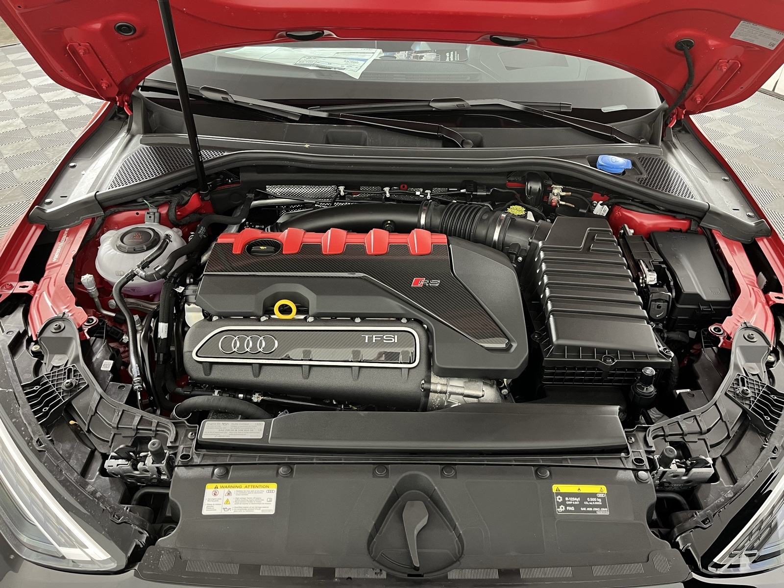 Progressive Red Metallic{Features), 180 Mph Top Speed Limiter, Audi Guard All-Weather Mats, Carbon Engine Cover, Dynamic Plus Package, Eramic Front Brakes with Red Calipers, Sport Exhaust System with Black Tips.2.5L 5-Cylinder TFSI