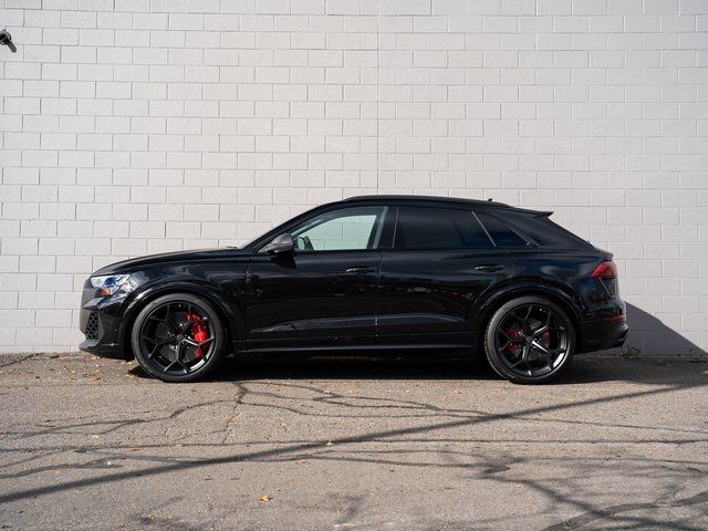 2026 Audi RS Q8 performance 4.0T 4.0L V8 Turbocharged DOHC 32V LEV3-ULEV125 631hp 8-Speed Automatic with Tiptronic Mythos Black MetallicABS brakes, Active Cruise Control, Alloy wheels, Compass, Electronic Stability Control, Front dual zone A/C, Heated door mirrors, Heated front seats, Illuminated entry, Low tire pressure warning, Navigation System, Power Liftgate, Rear dual zone A/C, Remote keyless entry, Traction control.