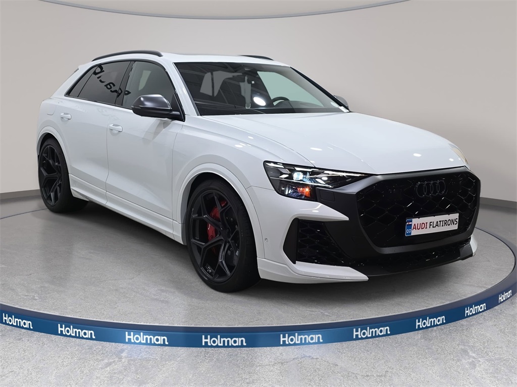 White 2026 Audi RS Q8 performance 4.0T quattro quattro Dealer Inspected, 7-Pin Adapter, Alcantara Covered Steering Wheel, Black Dinamica Headliner, Black Seat Belts with Red Edging, Dinamica Covered Shift Lever & Center Console Sides, Dual-Pane Acoustic Glass For Side Windows, Executive Package, Head-Up Display, Heated Rear Seats, Intersection Assist, Luxury Package, Massage Function For Front Seats, Power Soft-Closing Doors, Remote Park Assist Plus, RS Design Package - Red, RS Logo Floor Mats with Red Contrast Stitching, Trailer Hitch.TO THE QUOTED PRICE OF EACH VEHICLE SOLD, THERE WILL BE ADDED THE SUM OF $695 FOR COSTS AND ADDITIONAL PROFIT TO THE SELLER/DEALER. We also pre-equip Stargard on every vehicle we keep for security, the cost is $995.