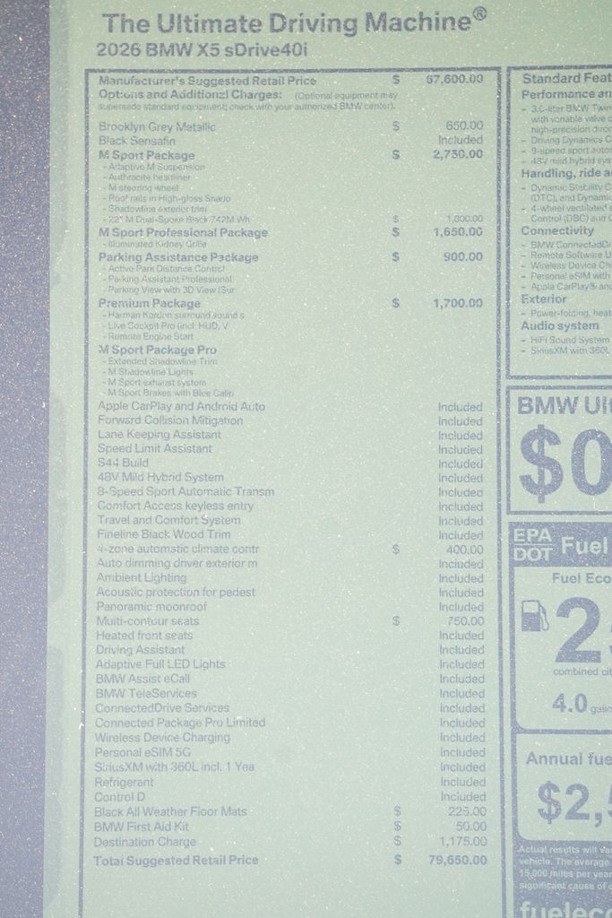 Brooklyn Grey Metallic 2026 BMW X5 sDrive40i RWD 8-Speed Automatic Sport 3.0L I6 DOHC 24V23/27 City/Highway MPG