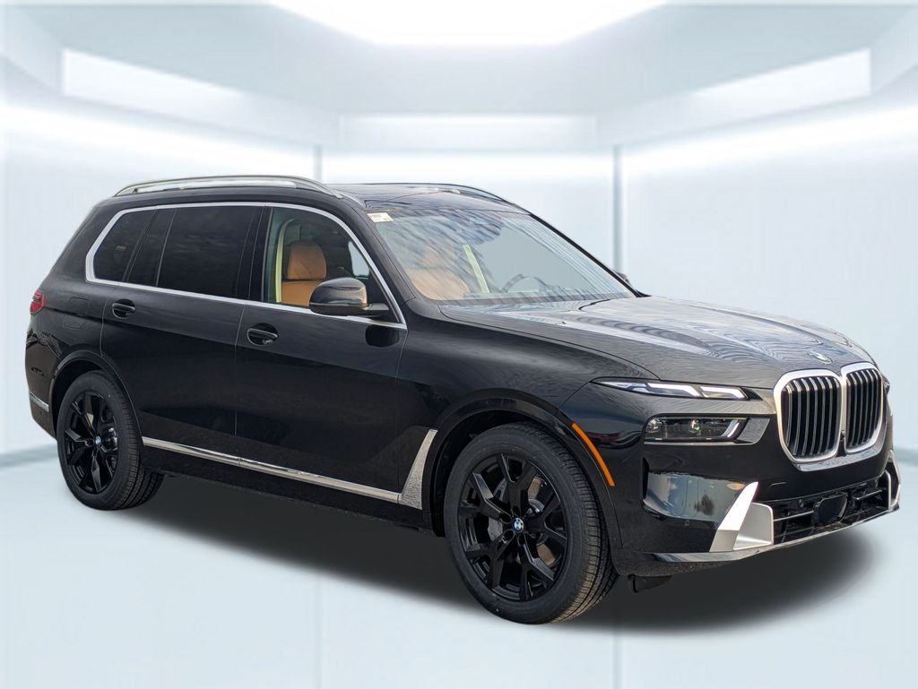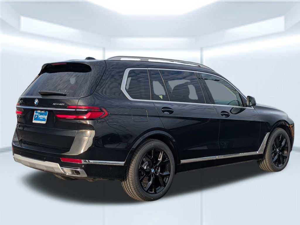 Black Sapphire Metallic 2026 BMW X7 xDrive40i AWD 8-Speed Automatic Sport 3.0L I6 DOHC 24V 10 Speakers, 3rd row seats: split-bench, 4-Wheel Disc Brakes, ABS brakes, Adaptive suspension, Air Conditioning, Alloy wheels, AM/FM radio: SiriusXM with 360L, AM/FM Stereo, Apple CarPlay and Android Auto Compatibility, Apple CarPlay Compatibility, Auto High-beam Headlights, Auto tilt-away steering wheel, Auto-dimming door mirrors, Auto-dimming Rear-View mirror, Auto-leveling suspension, Automatic temperature control, BMW Assist ECall, BMW TeleServices, Brake assist, Bumpers: body-color, Compass, Connected Package Pro, ConnectedDrive Services, Delay-off headlights, Driver door bin, Driver vanity mirror, Dual front impact airbags, Dual front side impact airbags, Electronic Stability Control, Emergency communication system: BMW Assist eCall, Exterior Parking Camera Rear, Four wheel independent suspension, Front anti-roll bar, Front Bucket Seats, Front Center Armrest, Front dual zone A/C, Front reading lights, Fully automatic headlights, Garage door transmitter, Genuine wood console insert, Genuine wood dashboard insert, Genuine wood door panel insert, Head restraints memory, Heads-Up Display, Heated door mirrors, Heated front seats, Heated Multi-Contour Seats, Heated steering wheel, Hi-Fi Sound System, Illuminated entry, Knee airbag, Leather steering wheel, Live Cockpit Pro, Low tire pressure warning, Memory seat, Navigation system: BMW Maps Navigation, Occupant sensing airbag, Outside temperature display, Overhead airbag, Panic alarm, Passenger door bin, Passenger vanity mirror, Personal ESIM 5G, Power adjustable front head restraints, Power door mirrors, Power driver seat, Power Front Seats, Power moonroof, Power passenger seat, Power steering, Power windows, Radio data system, Rain sensing wipers, Rear air conditioning, Rear anti-roll bar, Rear dual zone A/C, Rear reading lights, Rear seat center armrest, Rear window defroster, Rear window wiper, Reclining 3rd row seat, Remote keyless entry, Security system, Sensafin Upholstery with Decor Stitching, SiriusXM with 360L and 1 Year Trial Subscription, Speed control, Speed-sensing steering, Speed-Sensitive Wipers, Split folding rear seat, Spoiler, Sport steering wheel, Steering wheel memory, Steering wheel mounted audio controls, Tachometer, Telescoping steering wheel, Tilt steering wheel, Traction control, Trip computer, Turn signal indicator mirrors, Variably intermittent wipers, Wireless Charging Device.