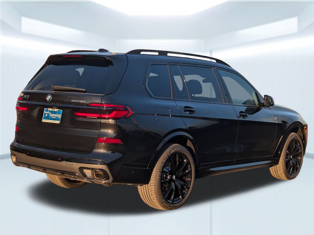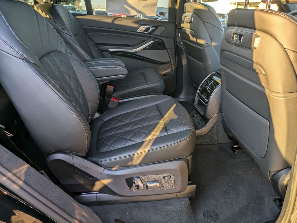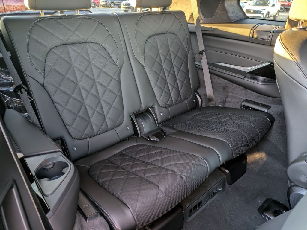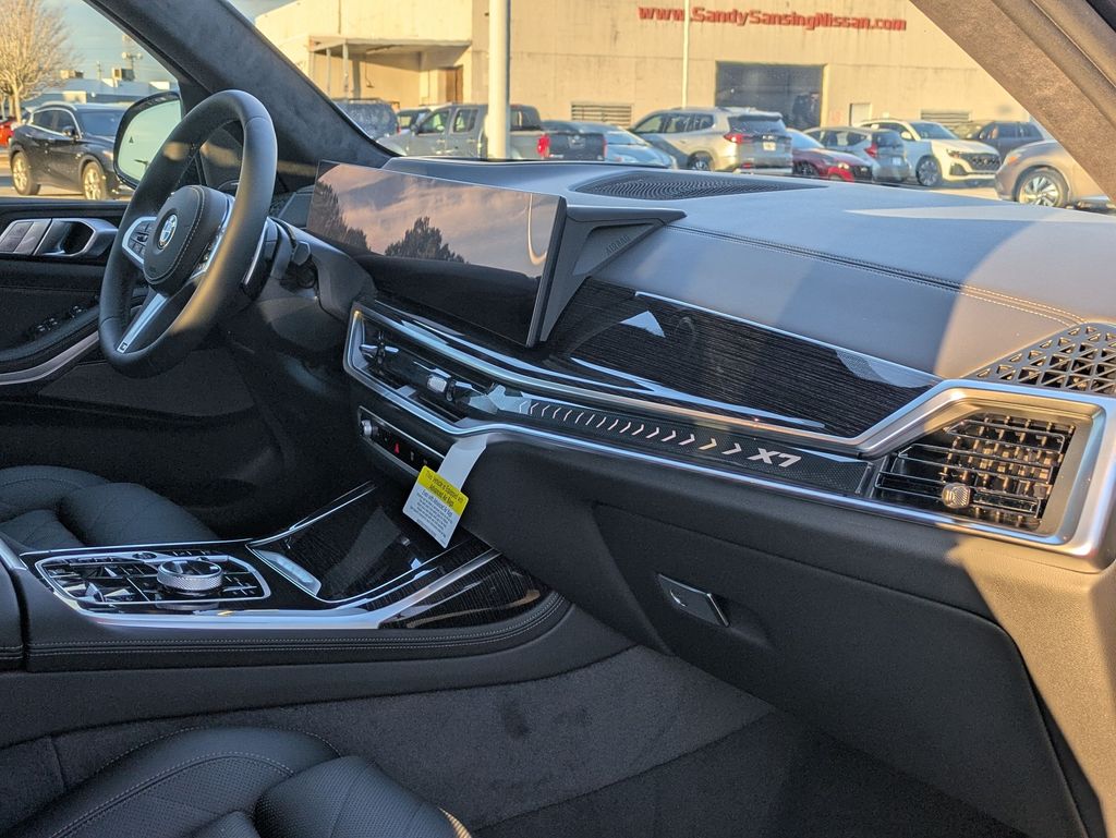 Black Sapphire Metallic 2026 BMW X7 xDrive40i AWD 8-Speed Automatic Sport 3.0L I6 DOHC 24V 10 Speakers, 3rd row seats: split-bench, 4-Wheel Disc Brakes, ABS brakes, Adaptive suspension, Air Conditioning, Alloy wheels, AM/FM radio: SiriusXM with 360L, AM/FM Stereo, Apple CarPlay and Android Auto Compatibility, Apple CarPlay Compatibility, Auto High-beam Headlights, Auto tilt-away steering wheel, Auto-dimming door mirrors, Auto-dimming Rear-View mirror, Auto-leveling suspension, Automatic temperature control, BMW Assist ECall, BMW TeleServices, Brake assist, Bumpers: body-color, Compass, Connected Package Pro, ConnectedDrive Services, Delay-off headlights, Driver door bin, Driver vanity mirror, Dual front impact airbags, Dual front side impact airbags, Electronic Stability Control, Emergency communication system: BMW Assist eCall, Exterior Parking Camera Rear, Four wheel independent suspension, Front anti-roll bar, Front Bucket Seats, Front Center Armrest, Front dual zone A/C, Front reading lights, Fully automatic headlights, Garage door transmitter, Genuine wood console insert, Genuine wood dashboard insert, Genuine wood door panel insert, Head restraints memory, Heads-Up Display, Heated door mirrors, Heated front seats, Heated Multi-Contour Seats, Heated steering wheel, Hi-Fi Sound System, Illuminated entry, Knee airbag, Leather steering wheel, Live Cockpit Pro, Low tire pressure warning, Memory seat, Navigation system: BMW Maps Navigation, Occupant sensing airbag, Outside temperature display, Overhead airbag, Panic alarm, Passenger door bin, Passenger vanity mirror, Personal ESIM 5G, Power adjustable front head restraints, Power door mirrors, Power driver seat, Power Front Seats, Power moonroof, Power passenger seat, Power steering, Power windows, Radio data system, Rain sensing wipers, Rear air conditioning, Rear anti-roll bar, Rear dual zone A/C, Rear reading lights, Rear seat center armrest, Rear window defroster, Rear window wiper, Reclining 3rd row seat, Remote keyless entry, Security system, Sensafin Upholstery with Decor Stitching, SiriusXM with 360L and 1 Year Trial Subscription, Speed control, Speed-sensing steering, Speed-Sensitive Wipers, Split folding rear seat, Spoiler, Sport steering wheel, Steering wheel memory, Steering wheel mounted audio controls, Tachometer, Telescoping steering wheel, Tilt steering wheel, Traction control, Trip computer, Turn signal indicator mirrors, Variably intermittent wipers, Wireless Charging Device.
