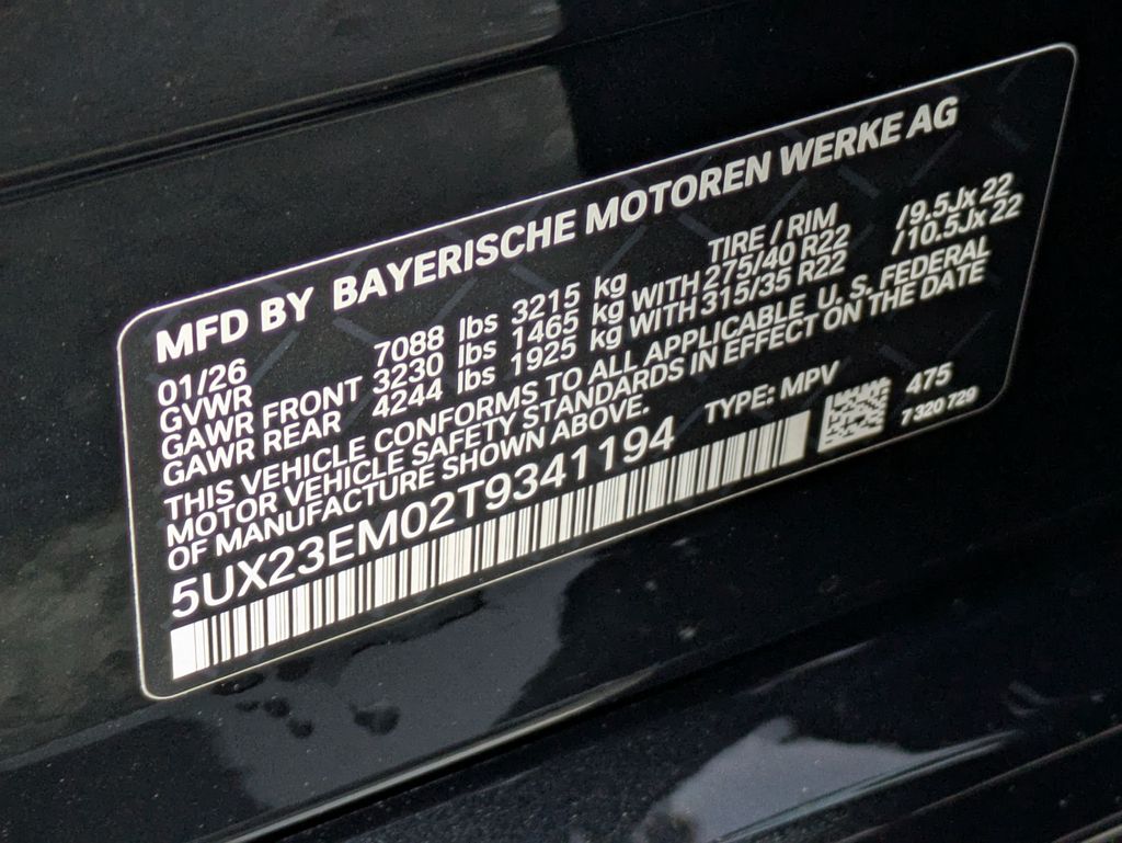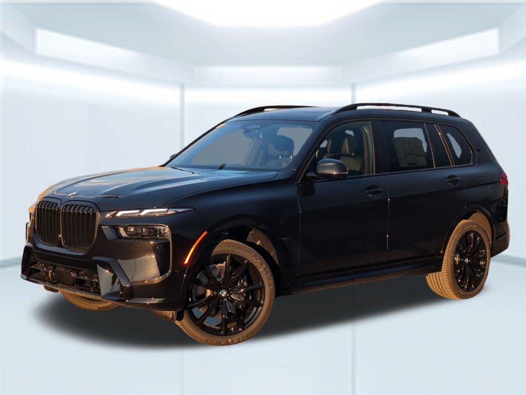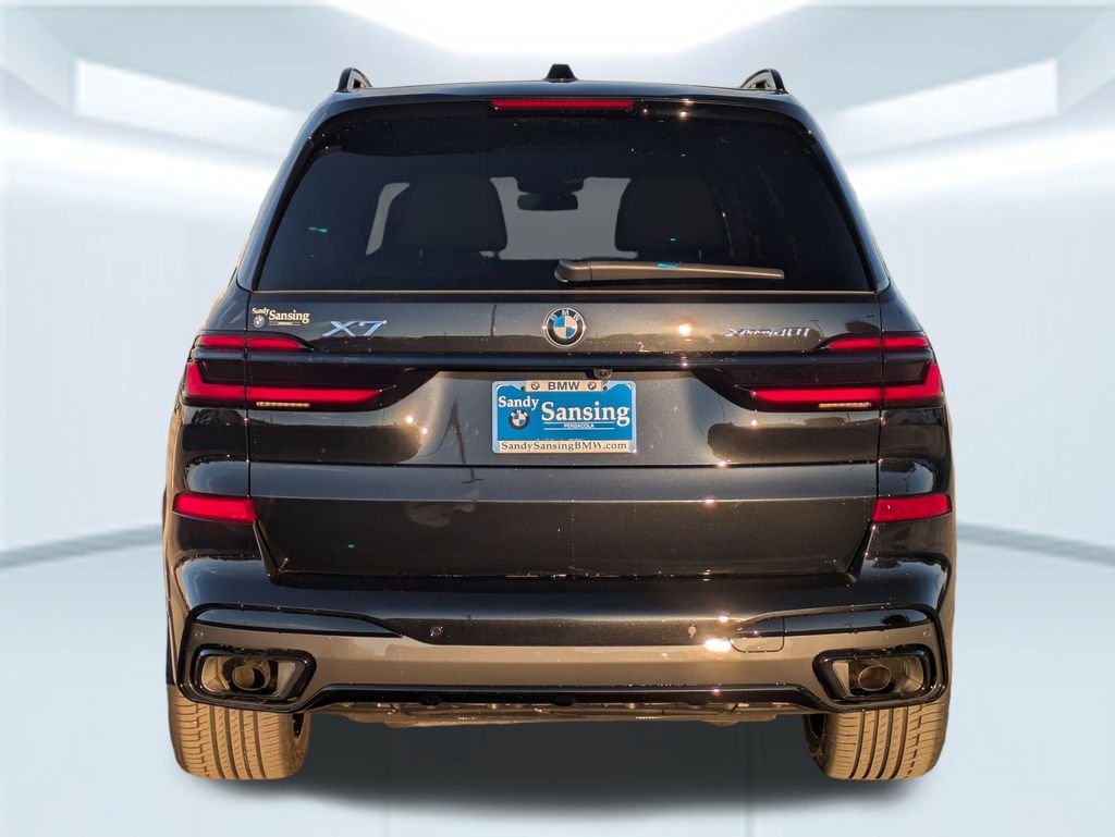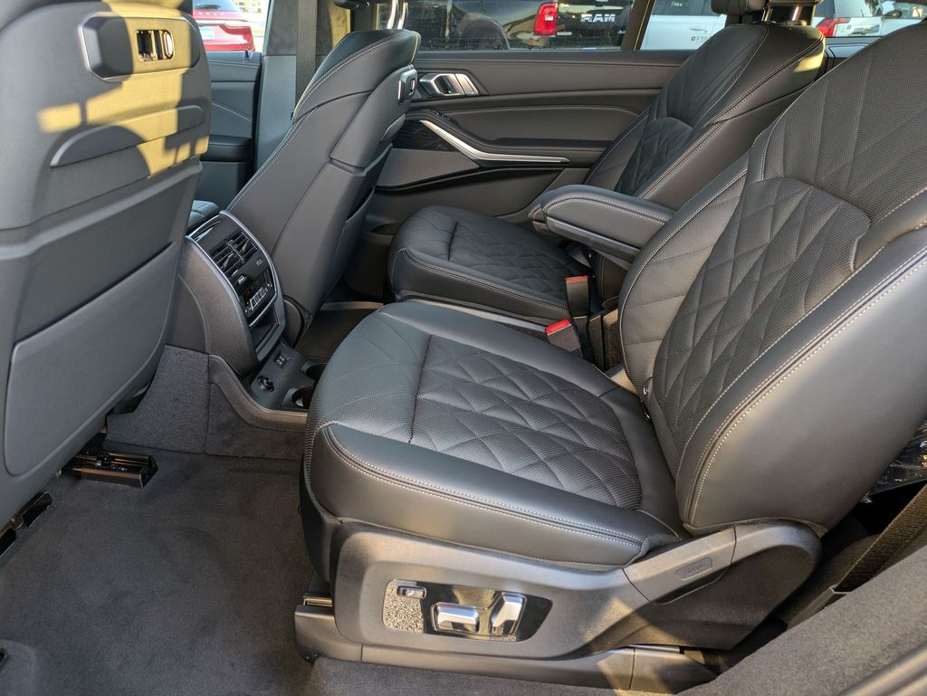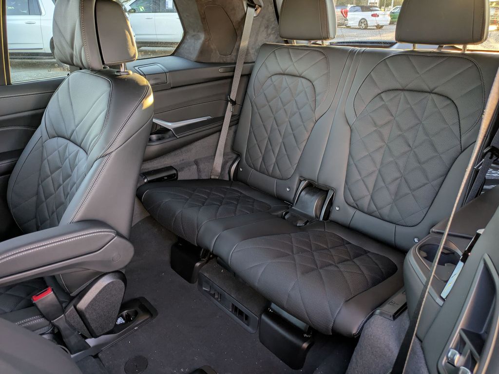 Black Sapphire Metallic 2026 BMW X7 xDrive40i AWD 8-Speed Automatic Sport 3.0L I6 DOHC 24V 10 Speakers, 3rd row seats: split-bench, 4-Wheel Disc Brakes, ABS brakes, Adaptive suspension, Air Conditioning, Alloy wheels, AM/FM radio: SiriusXM with 360L, AM/FM Stereo, Apple CarPlay and Android Auto Compatibility, Apple CarPlay Compatibility, Auto High-beam Headlights, Auto tilt-away steering wheel, Auto-dimming door mirrors, Auto-dimming Rear-View mirror, Auto-leveling suspension, Automatic temperature control, BMW Assist ECall, BMW TeleServices, Brake assist, Bumpers: body-color, Compass, Connected Package Pro, ConnectedDrive Services, Delay-off headlights, Driver door bin, Driver vanity mirror, Dual front impact airbags, Dual front side impact airbags, Electronic Stability Control, Emergency communication system: BMW Assist eCall, Exterior Parking Camera Rear, Four wheel independent suspension, Front anti-roll bar, Front Bucket Seats, Front Center Armrest, Front dual zone A/C, Front reading lights, Fully automatic headlights, Garage door transmitter, Genuine wood console insert, Genuine wood dashboard insert, Genuine wood door panel insert, Head restraints memory, Heads-Up Display, Heated door mirrors, Heated front seats, Heated Multi-Contour Seats, Heated steering wheel, Hi-Fi Sound System, Illuminated entry, Knee airbag, Leather steering wheel, Live Cockpit Pro, Low tire pressure warning, Memory seat, Navigation system: BMW Maps Navigation, Occupant sensing airbag, Outside temperature display, Overhead airbag, Panic alarm, Passenger door bin, Passenger vanity mirror, Personal ESIM 5G, Power adjustable front head restraints, Power door mirrors, Power driver seat, Power Front Seats, Power moonroof, Power passenger seat, Power steering, Power windows, Radio data system, Rain sensing wipers, Rear air conditioning, Rear anti-roll bar, Rear dual zone A/C, Rear reading lights, Rear seat center armrest, Rear window defroster, Rear window wiper, Reclining 3rd row seat, Remote keyless entry, Security system, Sensafin Upholstery with Decor Stitching, SiriusXM with 360L and 1 Year Trial Subscription, Speed control, Speed-sensing steering, Speed-Sensitive Wipers, Split folding rear seat, Spoiler, Sport steering wheel, Steering wheel memory, Steering wheel mounted audio controls, Tachometer, Telescoping steering wheel, Tilt steering wheel, Traction control, Trip computer, Turn signal indicator mirrors, Variably intermittent wipers, Wireless Charging Device.