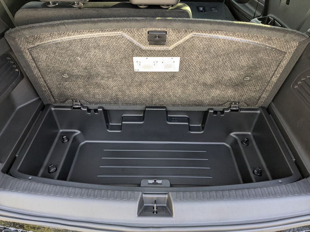 Power Package: Memory Settings; Head-Up Display; Heated Wiper Park; 3rd Row 60/40 Power Split-Folding Bench Seat; 110-Volt Power Outlet; Inside Rearview Auo-Dimming Rear Camera Mirror; 2nd Row 1-Touch Flat Folding Seat; Universal Home Remote. Preferred Equipment Group 1SM. All-Wheel Drive System with Driver Select Chassis. Ebony Twilight Metallic. Front Mounting License Plate Bracket Package. **Equipment listed is based on original vehicle build and subject to change. Please confirm the accuracy of the included equipment by calling the dealer prior to purchase.**