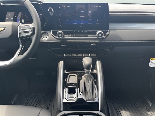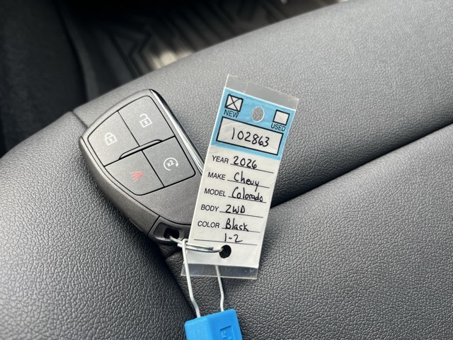 Black 2026 Chevrolet Colorado LT RWD 8-Speed Automatic 2.7L I4 Turbocharged DOHC 16V LEV3-ULEV50 310hpLT Convenience Package (120-Volt Bed-Mounted Power Outlet, 120-Volt Power Outlet, Driver Seatback Map Pocket, Dual Rear USB Ports (charge Only), Evotex Seat Trim, Front LED Fog Lamps, Heated Steering Wheel, LED Daytime Running Lamps, LED Headlamps, LED Stop Tail Lamp, Rear Center Armrest, and Wireless Phone Charging), Preferred Equipment Group 2LT (Automatic Emergency Braking, Chevy Safety Assist, Following Distance Indicator, Forward Collision Alert, Front Pedestrian and Bicyclist Braking, IntelliBeam Automatic High Beam on/Off, and Lane Keep Assist with Lane Departure Warning), Technology Package (Adaptive Cruise Control, HD Surround Vision, and Rear Pedestrian Alert), 1st and 2nd Row All-Weather Floor Liner, 3.42 Rear Axle Ratio, 4-Way Manual Passenger Seat Adjuster, 4-Wheel Disc Brakes, 6 Speakers, 6-Speaker Audio System Feature, 8-Way Power Driver Seat Adjuster, ABS brakes, Air Conditioning, Alloy wheels, AM/FM radio: SiriusXM with 360L, Apple CarPlay/Android Auto, Auto High-beam Headlights, Auto-dimming Rear-View mirror, Automatic temperature control, Black Bowtie Emblem, Brake assist, Bumpers: body-color, Cloth Seat Trim, Compass, Delay-off headlights, Driver and Front Passenger Heated Seats, Driver door bin, Driver vanity mirror, Dual front impact airbags, Dual front side impact airbags, Electronic Stability Control, Emergency communication system: OnStar, Front anti-roll bar, Front Bucket Seats, Front Center Armrest, Front dual zone A/C, Front License Plate Kit, Front Passenger Seatback Map Pocket, Front reading lights, Front wheel independent suspension, Heated door mirrors, Heated front seats, Illuminated entry, Low tire pressure warning, Navigation System, Occupant sensing airbag, Outside temperature display, Overhead airbag, Overhead console, Panic alarm, Passenger door bin, Passenger vanity mirror, Power door mirrors, Power Driver Lumbar Control Seat Adjuster, Power driver seat, Power steering, Power windows, Radio data system, Radio: 11.3 Diagonal Advanced Color LCD Display, Rear reading lights, Rear step bumper, Rear window defroster, Remote keyless entry, Security system, SiriusXM with 360L Trial Subscription, Speed control, Speed-sensing steering, Split folding rear seat, Steering Wheel Mounted Audio Controls, Steering wheel mounted audio controls, Tachometer, Telescoping steering wheel, Tilt steering wheel, Traction control, Trip computer, Variably intermittent wipers, Wheels: 17 x 8 Argent Metallic Aluminum, and Wireless Phone Projection.