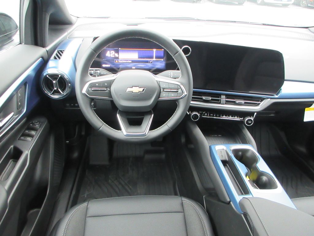Black 2026 Chevrolet Equinox EV LT FWD 1-Speed Automatic Electric Motor Equinox EV LT, 4D Sport Utility, Electric Motor, 1-Speed Automatic, FWD, Black, Black With Blue Accents, Active Safety Package 2, Comfort Package, Driver 8-Way Power Seat Adjuster, Enhanced Traffic Sign Recognition, HD Surround Vision, Heated Automatic Steering Wheel, Power Driver Lumbar Control, Rear Pedestrian Alert, Round Bottom Wrapped Steering Wheel.