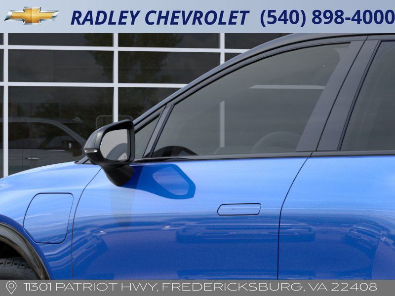 Blue 2026 Chevrolet Equinox EV RS FWD 1-Speed Automatic Electric Motor 4-Wheel Disc Brakes, 6 Speakers, 6-Speaker Audio System Feature, ABS brakes, Air Conditioning, Alloy wheels, AM/FM radio: SiriusXM with 360L, Auto High-beam Headlights, Auto-Dimming Inside Rear-View Mirror, Auto-dimming Rear-View mirror, Automatic temperature control, Brake assist, Bumpers: body-color, Compass, Delay-off headlights, Driver 8-Way Power Seat Adjuster, Driver door bin, Driver vanity mirror, Dual front impact airbags, Dual front side impact airbags, Electronic Stability Control, Emergency communication system: OnStar and Chevrolet connected services capable, Evotex Seat Trim, Four wheel independent suspension, Front anti-roll bar, Front Bucket Seats, Front Center Armrest, Front Passenger 4-Way Manual Seat Adjuster, Front reading lights, Fully automatic headlights, Heated door mirrors, Heated Driver and Front Passenger Seats Cushion and Seatback, Heated front seats, Heated steering wheel, Illuminated entry, Knee airbag, Low tire pressure warning, Navigation system: Google built-in compatibility (select service plan required, terms and limitations apply), Occupant sensing airbag, Outside temperature display, Overhead airbag, Overhead console, Panic alarm, Passenger door bin, Passenger vanity mirror, Power door mirrors, Power Driver Lumbar Control, Power driver seat, Power Liftgate, Power steering, Power windows, Radio: 17.7 Diagonal Advanced Color LCD Display, Rear anti-roll bar, Rear reading lights, Rear seat center armrest, Rear window defroster, Rear window wiper, Remote keyless entry, Security system, SiriusXM with 360L Trial Subscription, Speed control, Split folding rear seat, Spoiler, Sport steering wheel, Steering wheel mounted audio controls, Telescoping steering wheel, Tilt steering wheel, Traction control, Trip computer, Turn signal indicator mirrors, Variably intermittent wipers, Wheels: 21 Black Painted Aluminum.