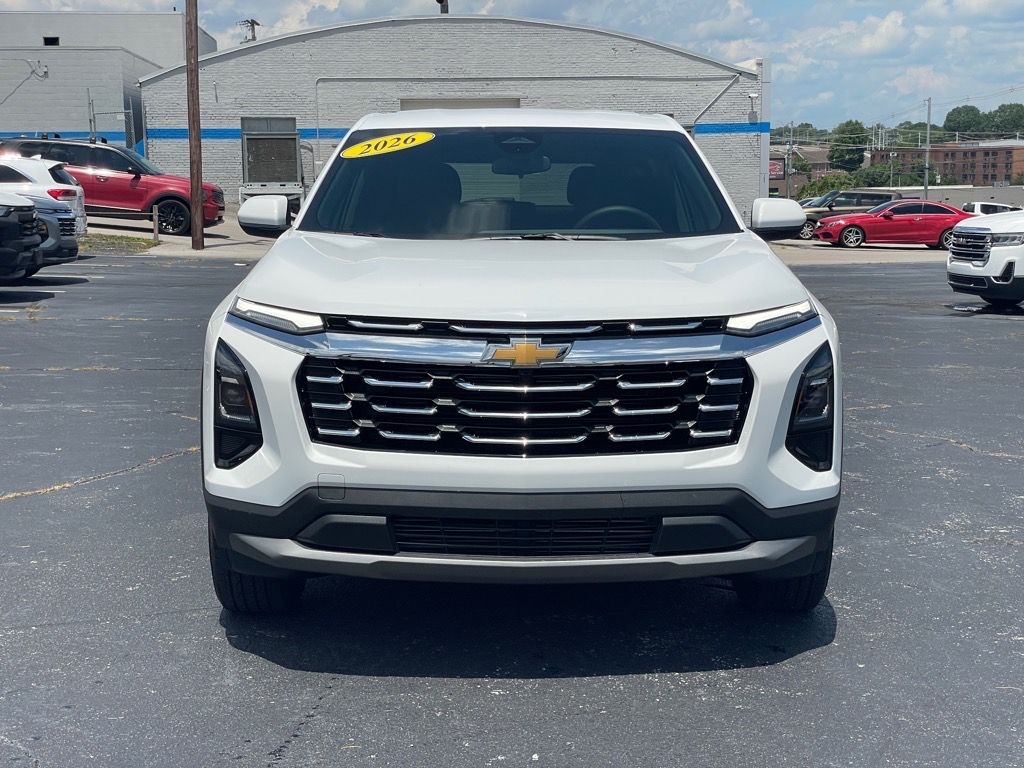 <b>Vehicle Details</b><br>2026 Chevrolet Equinox FWD LT Practical' comfortable and ready for your daily drives. This late-model Chevrolet Equinox pairs a responsive 1.5L 4-cylinder engine with smooth front-wheel-drive handling for efficient commuting and confident highway cruising. Inside' enjoy modern conveniences like navigation for stress-free routing' a back-up camera and rear parking sensors that make tight spaces simple' and remote start to warm up or cool down before you get in. Hands-free Bluetooth keeps calls and media connected safely while you drive. The LT trim provides a comfortable cabin with thoughtful features and quality materials' offering a quiet ride and supportive seating for passengers. Cargo space is versatile' with split-folding rear seats to handle gear' groceries or weekend projects. Advanced infotainment integrates easily with smartphones' and the vehicles efficiency helps you spend less at the pump. Well-maintained and inspected' this Chevrolet Equinox is an excellent choice for commuters' small families or anyone seeking a reliable compact SUV with modern tech and sensible performance. Contact us to schedule a test drive or for details on financing and available warranty options. Experience its comfort and capability in person today.<br><br><b>Equipment</b><br>The rear parking assist technology on it will put you at ease when reversing. The system alerts you as you get closer to an obstruction. This model features a hands-free Bluetooth phone system. Never get into a cold vehicle again with the remote start feature on the Chevrolet Equinox. Keep your hands warm all winter with a heated steering wheel in this Chevrolet Equinox . Protect the Chevrolet Equinox from unwanted accidents with a cutting edge backup camera system. The vehicle has auto-adjust speed for safe following. The Chevrolet Equinox stays safely in its lane with Lane Keep Assist. You'll never again be lost in a crowded city or a country region with the navigation system on it. This vehicle's Lane Departure Warning helps keep you in your lane. This mid-size suv shines with clean polished lines coated with an elegant white finish. This vehicle has a 4 Cyl' 1.5L high output engine.<br><br><b>Packages</b><br>Preferred Equipment Group 1LT. **Equipment listed is based on original vehicle build and subject to change. Please confirm the accuracy of the included equipment by calling the dealer prior to purchase.**