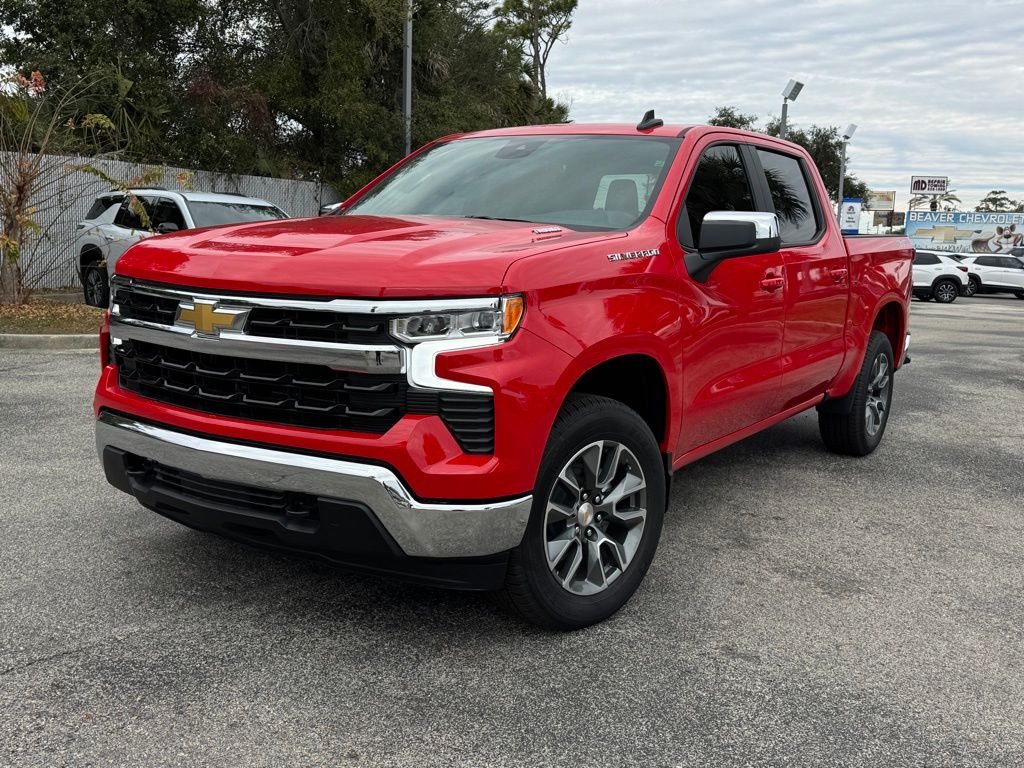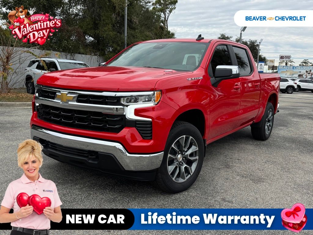 LIFETIME POWERTRAIN WARRANTY! HERE AT BEAVER CHEVROLET WE ARE THE HIGHEST RATED CHEVROLET DEALER IN NORTH FLORIDA! ALL NEW VEHICLES COME WITH PEACE OF MIND! LIFETIME POWERTRAIN WARRANTY, UNLIMITED TIME AND MILES, AND 5 OIL CHANGES! Convenience Package Trailering Package Dual-Zone Automatic Climate Control 120-Volt Bed Mounted Power Outlet 120-Volt Interior Power Outlet Manual Tilt/Telescoping Steering Column Wrapped Steering Wheel LED Cargo Area Lighting Heated Steering Wheel Hitch GuidanceThis 2026 Chevrolet Silverado 1500 LT is a rugged and capable full-size pickup that's ready to take on any task. Powered by a potent 2.7L I4 Turbocharged engine delivering 310 horsepower, this Silverado provides the performance you need to tow your boat, haul your gear, or conquer any terrain with its 4-wheel drive system. The Silverado's striking Red exterior makes a bold statement, while the well-appointed interior offers premium features like dual-zone automatic climate control, a heated steering wheel, and a 120-volt power outlet in the bed perfect for powering your tools or tailgate festivities. The Convenience Package and Trailering Package further enhance the Silverado's versatility, ensuring you have the technology and capability to tackle any job with ease.With its impressive fuel efficiency, delivering 17 MPG in the city and 21 MPG on the highway, this Silverado 1500 LT is both powerful and economical. And with just 5 miles on the odometer, it's practically brand new, giving you the opportunity to be the first to experience all this remarkable truck has to offer.Whether you're hauling heavy loads, navigating rough terrain, or simply enjoying the open road, this 2026 Chevrolet Silverado 1500 LT is the perfect companion. Its combination of strength, technology, and comfort make it a standout in the full-size pickup segment. Don't miss your chance to own this exceptional Silverado. Visit our showroom today and let our team of sales specialists guide you through the features and capabilities that make this truck a true workhorse and a pleasure to drive.We provide you with world class service using the most advanced technology to service your car, by our friendly and compassionate team of sales specialists! Our Sales team consists of individuals handpicked to deliver a sales experience like no other. We want your experience to be unique and cater to your individuality. Our Sales team is committed to providing this experience! We want you to know we're listening, so please, feel free to always let us know how we can better serve you, or merely to express how unique your experience was here at Beaver Chevrolet!! Advertised price includes: $1000 - Chevrolet Select Market Bonus Cash. Exp. 03/02/2026 $2500 - Chevrolet Consumer Cash Program. Exp. 03/02/2026 $500 - GM Bonus Cash. Exp. 03/02/2026