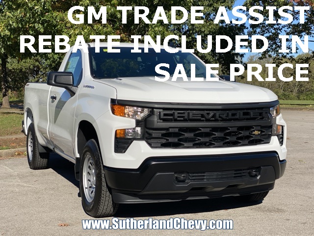 Summit White 2026 Chevrolet Silverado 1500 WT4WD 8-Speed Automatic 2.7L I4 Turbocharged DOHC 16V LEV3-SULEV30 310hp8-Speed Automatic, 4WD, Jet Black Vinyl. Price includes: $1000 - Chevrolet Trade Assistance Bonus Cash Program. Exp. 03/02/2026 $1000 - GM Bonus Cash. Exp. 03/02/2026 $3000 - Chevrolet Consumer Cash Program. Exp. 03/02/2026