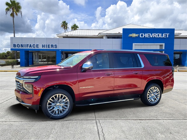 2026 Chevrolet Suburban Premier Premier RWD EcoTec3 5.3L V8 10-Speed Automatic with Overdrive Radiant Red 10 Speakers, 20 x 9 Polished Aluminum Wheels, 3.23 Rear Axle Ratio, 3rd Row 60/40 Power-Folding Split-Bench, 3rd row seats: split-bench, 4-Way Power Driver Lumbar Seat Adjuster, 4-Way Power Front Passenger Lumbar Seat Adjuster, 4-Wheel Disc Brakes, 8-Way Power Driver Seat Adjuster, 8-Way Power Front Passenger Seat Adjuster, ABS brakes, Adaptive suspension, Air Conditioning, Alloy wheels, AM/FM radio: SiriusXM with 360L, Apple CarPlay/Android Auto, Auto High-beam Headlights, Auto-dimming door mirrors, Auto-Dimming Inside Rear-View Mirror, Auto-dimming Rear-View mirror, Auto-leveling suspension, Automatic temperature control, Brake assist, Bumpers: body-color, Chrome Mirror Caps, Compass, Delay-off headlights, Driver door bin, Driver vanity mirror, Dual Exhaust System, Dual front impact airbags, Dual front side impact airbags, Electronic Stability Control, Emergency communication system: OnStar Services capable, Exterior Parking Camera Rear, Four wheel independent suspension, Front anti-roll bar, Front Bucket Seats, Front Center Armrest, Front dual zone A/C, Front fog lights, Front LED Fog Lamps, Front reading lights, Fully automatic headlights, Garage door transmitter, Heated 2nd Row Outboard Seats, Heated door mirrors, Heated front seats, Heated Power-Adjustable Outside Mirrors, Heated rear seats, Heated Steering Wheel, Heated steering wheel, Illuminated entry, Interior Camera, LED Tail Lamps, Low tire pressure warning, Magnetic Ride Control Suspension, Memory seat, Memory Settings, Navigation system: Google built-in compatibility (select service plan required, terms and limitations apply), Occupant sensing airbag, Outside temperature display, Overhead airbag, Overhead console, Panic alarm, Passenger door bin, Passenger vanity mirror, Perforated Leather Seating Surfaces, Power door mirrors, Power driver seat, Power Liftgate, Power passenger seat, Power Release 2nd Row Bucket Seats, Power steering, Power windows, Power-Sliding Center Floor Console, Radio data system, Radio: 17.7 Diagonal Advanced Color LCD Display, Rain sensing wipers, Rear air conditioning, Rear anti-roll bar, Rear Power Liftgate, Rear reading lights, Rear window defroster, Rear window wiper, Remote keyless entry, Security system, Speed control, Speed-sensing steering, Split folding rear seat, Spoiler, Steering wheel memory, Steering wheel mounted audio controls, Tachometer, Telescoping steering wheel, Tilt steering wheel, Traction control, Trip computer, Turn signal indicator mirrors, Universal Home Remote, Variably intermittent wipers, Ventilated front seats, Voltmeter, Wireless Apple CarPlay/Wireless Android Auto, Wireless Phone Charging.