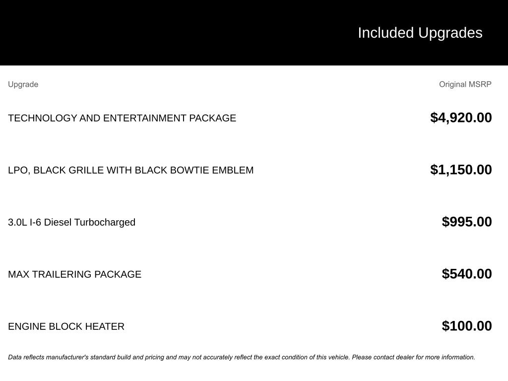 2026 Chevrolet Tahoe PremierWhat Does Better Value Mean for You? At Chevrolet of Everett, Better Value means giving you more than just a great carits about delivering unmatched benefits that make your new vehicle ownership experience exceptional. Heres how we do it: Oil Changes for Life: Save thousands with complimentary oil changes for as long as you own your new vehicle. Warranty for Life: Enjoy peace of mind with a lifetime powertrain warranty on your new Chevrolet. Windshield and Paint Protection: Protect your vehicle from the elements with our complimentary Repel Shield and paint protection. $1 Over Cost Tires: Get top-quality tires for your new vehicle at an unbeatable pricejust $1 over our cost. Better Value is about making new car ownership easier, more affordable, and worry-free. At Chevrolet of Everett, were committed to providing a Better Experience in every way. See dealer for details.3.0L I6Home of your Better Buying Experience.