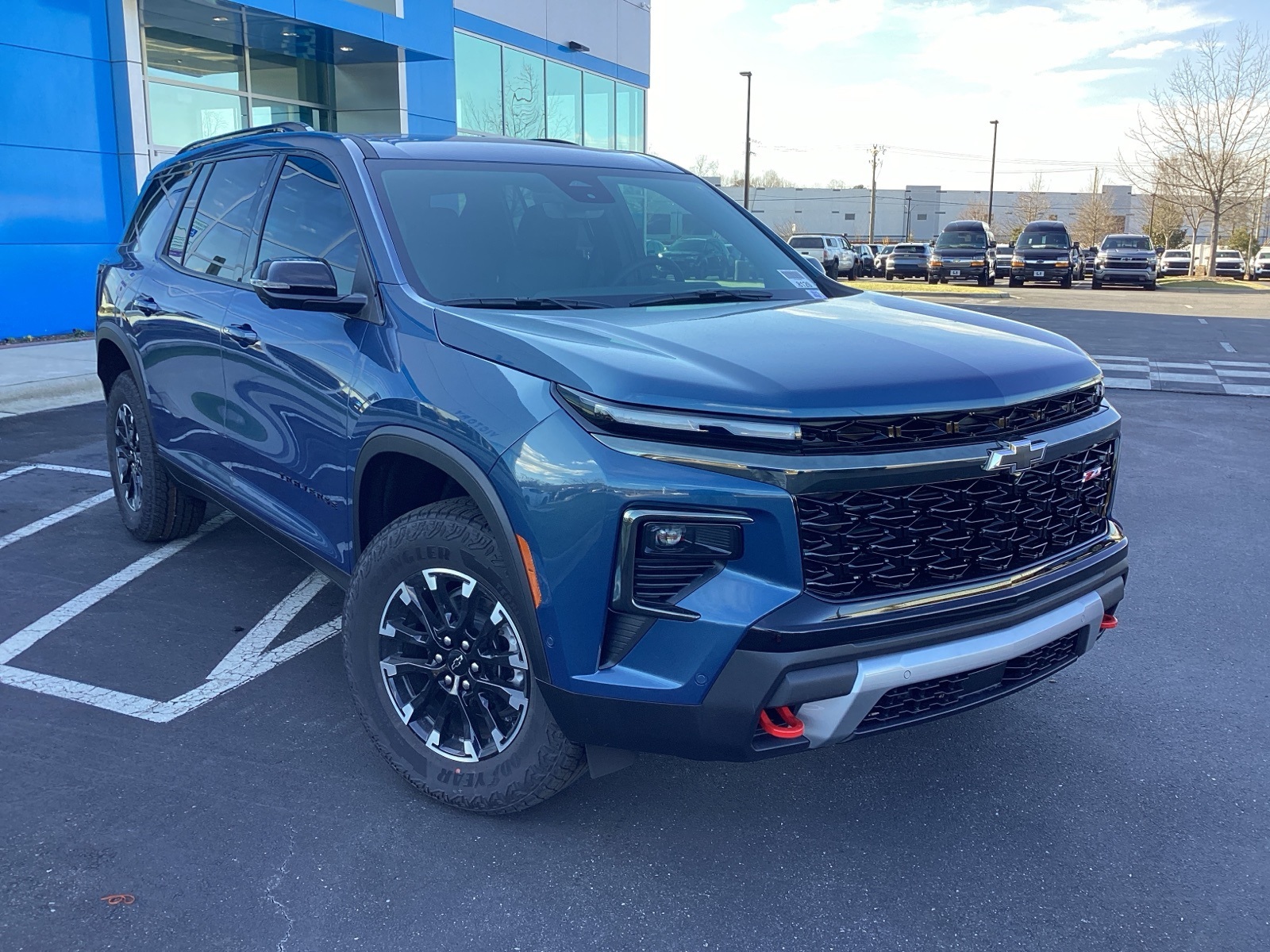This NEW 2026 Lakeshore Blue Metallic Chevrolet Traverse Z71 2.5L DOHC 8-Speed Automatic AWD is well equipped and includes these features and benefits:AWD, 3 Years OnStar One, Active Noise Cancellation, Bose Premium 12-Speaker Audio System Feature, Driver Attention Assist, Driver Confidence Package, Enhanced Automatic Parking Assist, Enhanced Driving Package, HD Surround Vision, Key Card, Navigation System, Power Outlet, Rear Camera Mirror, Rear Pedestrian Alert, Super Cruise, Traffic Sign Recognition, 3 Years SiriusXM, 3rd row seats: split-bench, 4-Way Manual Front Passenger Seat Adjuster, 4-Wheel Disc Brakes, 6 Speakers, 6-Speaker Audio System Feature, 8-Way Power Driver Seat Adjuster, ABS brakes, Air Conditioning, Alloy wheels, AM/FM radio: SiriusXM with 360L, Apple CarPlay/Android Auto, Auto High-beam Headlights, Automatic temperature control, Brake assist, Child-Seat-Sensing Airbag, Compass, Delay-off headlights, Driver door bin, Driver vanity mirror, Dual front impact airbags, Dual front side impact airbags, Electronic Stability Control, Emergency communication system: OnStar, Evotex Seat Trim, Four wheel independent suspension, Front anti-roll bar, Front Bucket Seats, Front Center Armrest, Front dual zone A/C, Front reading lights, Fully automatic headlights, Heated door mirrors, Heated Driver and Front Passenger Seats, Heated front seats, Heated steering wheel, Illuminated entry, Low tire pressure warning, Occupant sensing airbag, Outside temperature display, Overhead airbag, Overhead console, Panic alarm, Passenger door bin, Passenger vanity mirror, Power door mirrors, Power driver seat, Power Liftgate, Power steering, Power windows, Radio data system, Radio: : Audio System w/17.7 Diagonal Display, Rear air conditioning, Rear anti-roll bar, Rear reading lights, Rear window defroster, Rear window wiper, Remote keyless entry, Security system, SiriusXM with 360L Trial Subscription, Speed control, Speed-sensing steering, Spoiler, Steering wheel mounted audio controls, Tachometer, Telescoping steering wheel, Tilt steering wheel, Traction control, Trip computer, Turn signal indicator mirrors, Variably intermittent wipers, Voltmeter, Wheels: : 18 High Gloss Black Painted Aluminum, AWD, 3 Years OnStar One, Active Noise Cancellation, Bose Premium 12-Speaker Audio System Feature, Driver Attention Assist, Driver Confidence Package, Enhanced Automatic Parking Assist, Enhanced Driving Package, HD Surround Vision, Key Card, Navigation System, Power Outlet, Rear Camera Mirror, Rear Pedestrian Alert, Super Cruise, Traffic Sign Recognition.Prices on website may not represent current price. Additional fees include Victory Protection Package, doc fee, tax, tag, & title. See Dealer for Details. FREE DELIVERY To Your HOME or OFFICE, Financing Available and Trades Welcome.