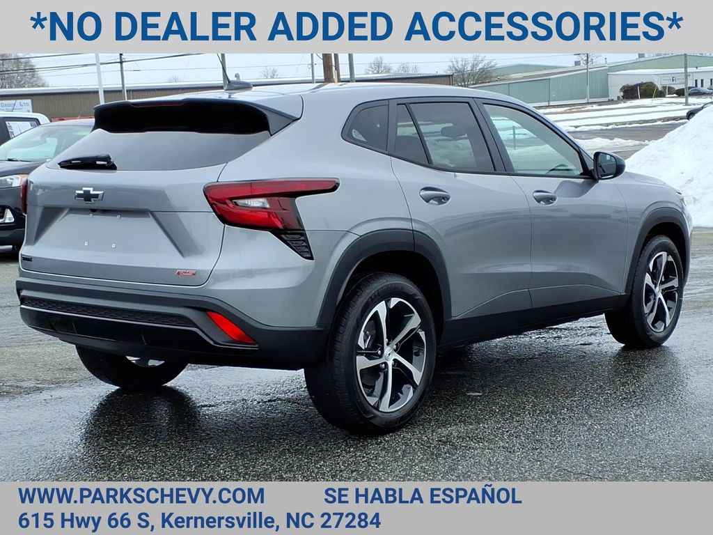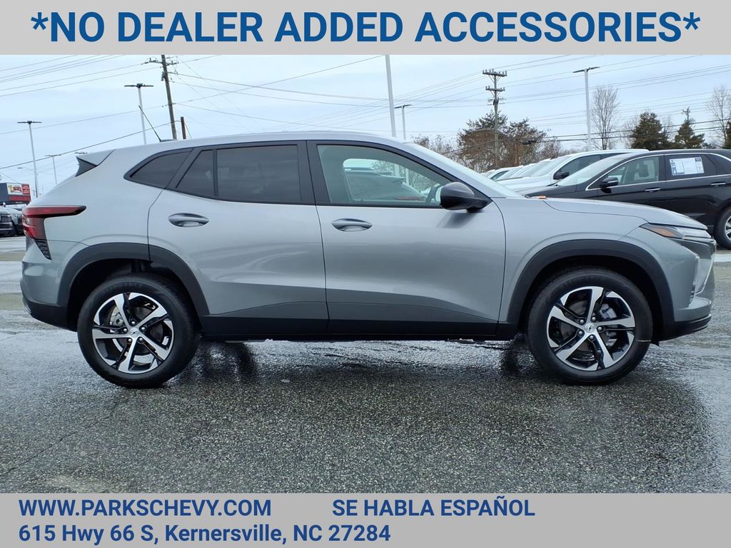 Elevate your driving experience with the exceptional 2026 Chevrolet Trax 1RS. This meticulously crafted crossover SUV combines style, performance, and cutting-edge technology, making it the perfect companion for your adventures.Boasting a dynamic ECOTEC 1.2L Turbo engine and a smooth 6-Speed Automatic transmission, the Trax 1RS delivers an impressive blend of power and efficiency, with an estimated 28 MPG in the city and 32 MPG on the highway. Adorned in a sleek Silver exterior, this vehicle exudes a refined and sophisticated presence. Driver Confidence Package Sunroof Package 4-Speaker Audio System Feature Premium audio system: Chevrolet Infotainment 3 Radio: Chevrolet Infotainment 3 System with AM/FM SiriusXM Trial Subscription Power steering Power windows Remote keyless entry Steering wheel mounted audio controls Traction control Power Sliding Glass Sunroof with Manual ShadeThe Trax 1RS is more than just a stylish ride; it's a testament to Chevrolet's commitment to safety and technology. With features like Brake Assist, Electronic Stability Control, Rear Park Assist, and Lane Change Alert with Side Blind Zone Alert, you can navigate the roads with confidence. The wireless Apple CarPlay and Android Auto integration seamlessly connect your smartphone, allowing you to access your favorite apps, music, and more with ease.Slip into the heated, 6-way adjustable driver's seat and experience the ultimate in comfort and convenience. The split-folding rear seat and ample cargo space make this crossover SUV the perfect companion for your active lifestyle, whether you're embarking on a road trip or tackling your daily errands.Discover the perfect balance of style, performance, and technology with the 2026 Chevrolet Trax 1RS. Visit our showroom today to take this exceptional vehicle for a test drive and experience the difference for yourself.Price excludes applicable tax, tag, and fees.Price may not include dealer installed accessories.Contact us online at www.ParksChevy.com or give us a call to get your questions answered, request a personalized quote, or schedule your test drive today. Parks Chevrolet Kernersville is proud to serve customers across North Carolina. Our prices cannot be beat and our service is always backed by the Parks Promise. Come visit us at 615 NC-66, Kernersville, NC 27284! We offer a wide selection of New Chevrolet, Commercial Chevrolet Utility Trucks, and Pre-Owned Vehicles.