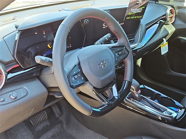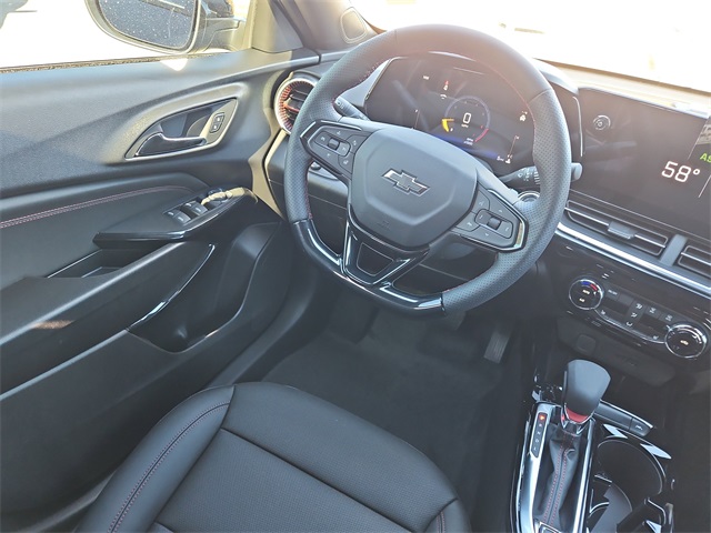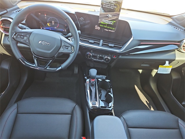 2026 Chevrolet Trax 2RS 2RS FWD ECOTEC 1.2L Turbo 6-Speed Automatic Black Metallic 2-Way Adjustable Front Head Restraints, 2-Way Power Driver Lumbar Seat Adjuster, 3.50 Final Drive Axle Ratio, 4-Way Manual Front Passenger Seat Adjuster, 4-Wheel Disc Brakes, 6 Speakers, 6-Speaker Audio System Feature, 8-Way Power Driver Seat Adjuster, ABS brakes, Adaptive Cruise Control, Air Conditioning, Alloy wheels, AM/FM radio: SiriusXM, Auto High-beam Headlights, Automatic temperature control, Brake assist, Bumpers: body-color, Compass, Delay-off headlights, Driver Confidence Package, Driver door bin, Driver vanity mirror, Dual front impact airbags, Dual front side impact airbags, Electronic Stability Control, Emergency communication system: OnStar One Essentials, Evotex Seat Trim, Exterior Parking Camera Rear, Front anti-roll bar, Front Bucket Seats, Front Center Armrest, Front reading lights, Front wheel independent suspension, Fully automatic headlights, Heated door mirrors, Heated Driver and Front Passenger Seats, Heated front seats, Heated steering wheel, Illuminated entry, Lane Change Alert with Side Blind Zone Alert, Leather steering wheel, Low tire pressure warning, Occupant sensing airbag, Outside temperature display, Overhead airbag, Overhead console, Panic alarm, Passenger door bin, Passenger vanity mirror, Power door mirrors, Power driver seat, Power steering, Power windows, Preferred Equipment Group 2RS, Premium audio system: Chevrolet Infotainment 3, Radio data system, Radio: AM/FM Stereo Audio System, Rear Cross Traffic Alert, Rear Park Assist, Rear window defroster, Rear window wiper, Remote keyless entry, Security system, SiriusXM Trial Subscription, Speed control, Split folding rear seat, Spoiler, Sport steering wheel, Steering wheel mounted audio controls, Tachometer, Telescoping steering wheel, Tilt steering wheel, Traction control, Trip computer, Variably intermittent wipers, Wheels: 19 Black-Painted Machined Aluminum, Wireless Apple CarPlay/Wireless Android Auto.