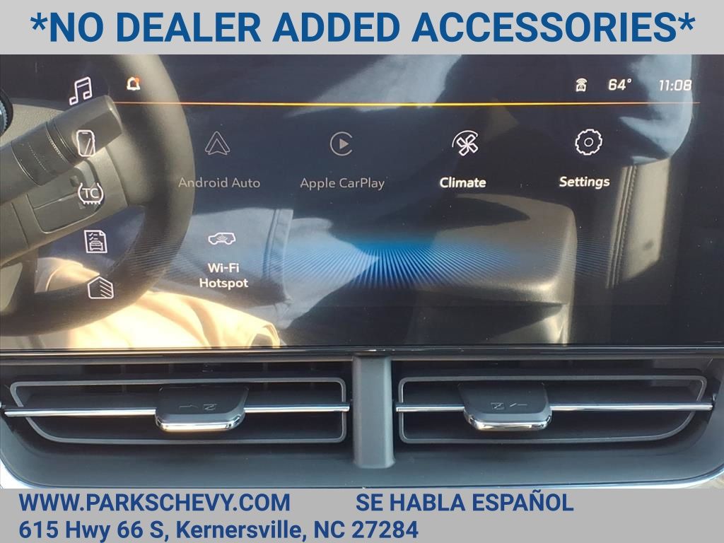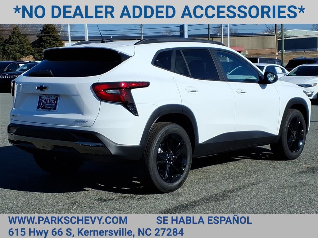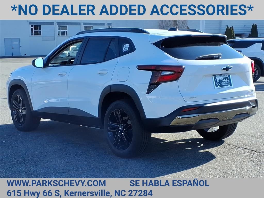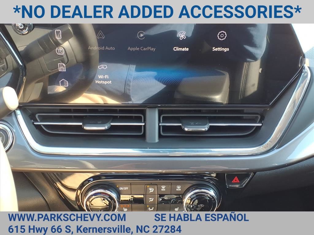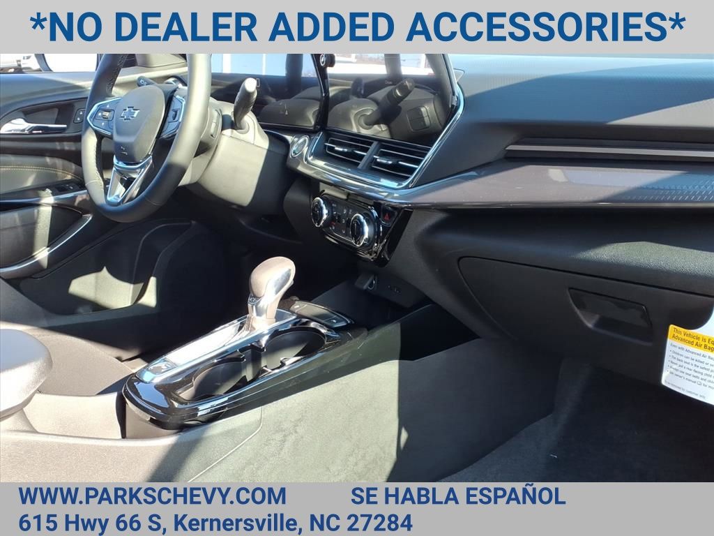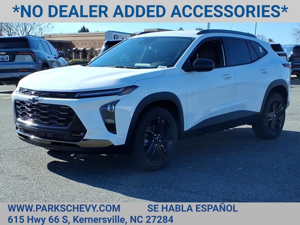 Check out this New 2026 Chevrolet Trax ACTIV available at Parks Chevrolet in Kernersville, NC. Offered at just $23990, this Chevrolet Trax wont last long. This FWD Chevrolet Trax ACTIV is powered by an ECOTEC 1.2L Turbo an includes these features and benefits Driver Confidence Package (Adaptive Cruise Control, Lane Change Alert with Side Blind Zone Alert, Rear Cross Traffic Alert, and Rear Park Assist), Preferred Equipment Group 1SA, 2-Way Adjustable Front Head Restraints, 2-Way Power Driver Lumbar Seat Adjuster, 3.50 Final Drive Axle Ratio, 4-Way Manual Front Passenger Seat Adjuster, 4-Wheel Disc Brakes, 6 Speakers, 6-Speaker Audio System Feature, 8-Way Power Driver Seat Adjuster, ABS brakes, Air Conditioning, Alloy wheels, AM/FM radio: SiriusXM, Auto High-beam Headlights, Automatic temperature control, Brake assist, Bumpers: body-color, Compass, Delay-off headlights, Driver door bin, Driver vanity mirror, Dual front impact airbags, Dual front side impact airbags, Electronic Stability Control, Emergency communication system: OnStar One Essentials, Evotex Seat Trim, Exterior Parking Camera Rear, Front anti-roll bar, Front Bucket Seats, Front Center Armrest, Front reading lights, Front wheel independent suspension, Fully automatic headlights, Heated door mirrors, Heated Driver and Front Passenger Seats, Heated front seats, Heated steering wheel, Illuminated entry, Leather steering wheel, Low tire pressure warning, Occupant sensing airbag, Outside temperature display, Overhead airbag, Overhead console, Panic alarm, Passenger door bin, Passenger vanity mirror, Power door mirrors, Power driver seat, Power steering, Power windows, Premium audio system: Chevrolet Infotainment 3, Radio data system, Radio: AM/FM Stereo Audio System, Rear window defroster, Rear window wiper, Remote keyless entry, Security system, SiriusXM Trial Subscription, Speed control, Split folding rear seat, Spoiler, Steering wheel mounted audio controls, Tachometer, Telescoping steering wheel, Tilt steering wheel, Traction control, Trip computer, Variably intermittent wipers, Wheels: 18 Black-Painted Aluminum, and Wireless Apple CarPlay/Wireless Android Auto.Price excludes applicable tax, tag, and fees. Price may not include dealer installed accessories. Contact us online at www.ParksChevy.com or give us a call to get your questions answered, request a personalized quote, or schedule your test drive today. Parks Chevrolet Kernersville is proud to serve customers across North Carolina. Our prices cannot be beat and our service is always backed by the Parks Promise. Come visit us at 615 NC-66, Kernersville, NC 27284! We offer a wide selection of New Chevrolet, Commercial Chevrolet Utility Trucks, and Pre-Owned Vehicles. Price includes: $500 - Customer Cash. Exp. 03/02/2026 All qualify.