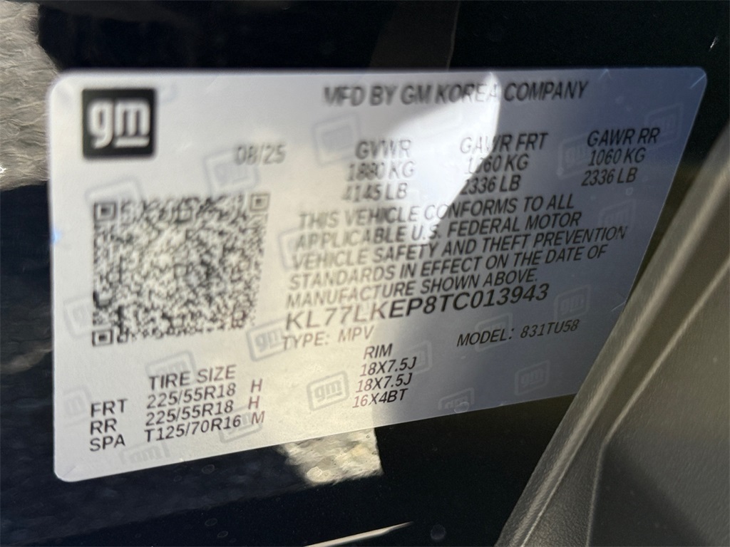 This NEW 2026 Mosaic Black Metallic Chevrolet Trax ACTIV FWD is well equipped and includes these features and benefits:2-Way Adjustable Front Head Restraints, 2-Way Power Driver Lumbar Seat Adjuster, 3.50 Final Drive Axle Ratio, 4-Way Manual Front Passenger Seat Adjuster, 4-Wheel Disc Brakes, 6 Speakers, 6-Speaker Audio System Feature, 8-Way Power Driver Seat Adjuster, ABS brakes, Air Conditioning, Alloy wheels, AM/FM radio: SiriusXM, Auto High-beam Headlights, Automatic temperature control, Brake assist, Bumpers: body-color, Compass, Delay-off headlights, Driver door bin, Driver vanity mirror, Dual front impact airbags, Dual front side impact airbags, Electronic Stability Control, Emergency communication system: OnStar One Essentials, Evotex Seat Trim, Exterior Parking Camera Rear, Front anti-roll bar, Front Bucket Seats, Front Center Armrest, Front reading lights, Front wheel independent suspension, Fully automatic headlights, Heated door mirrors, Heated front seats, Heated steering wheel, Illuminated entry, Leather steering wheel, Low tire pressure warning, Occupant sensing airbag, Outside temperature display, Overhead airbag, Overhead console, Panic alarm, Passenger door bin, Passenger vanity mirror, Power door mirrors, Power driver seat, Power steering, Power windows, Premium audio system: Chevrolet Infotainment 3, Radio data system, Radio: AM/FM Stereo Audio System, Rear window defroster, Rear window wiper, Remote keyless entry, Security system, SiriusXM Trial Subscription, Speed control, Split folding rear seat, Spoiler, Steering wheel mounted audio controls, Tachometer, Telescoping steering wheel, Tilt steering wheel, Traction control, Trip computer, Variably intermittent wipers, Wheels: 18 Black-Painted Aluminum, and Wireless Apple CarPlay/Wireless Android Auto. 28/32 City/Highway MPG 6-Speed Automatic ECOTEC 1.2L TurboNew Vehicle Prices do not include tax, tags, title, freight/destination, registration, electronic filing fee, processing fee of $800 (Not required by law), and iKon (Optional $1,295.) Call Sales Managers for any additional questions at 301-424-5900. See dealer for rebate eligibility.