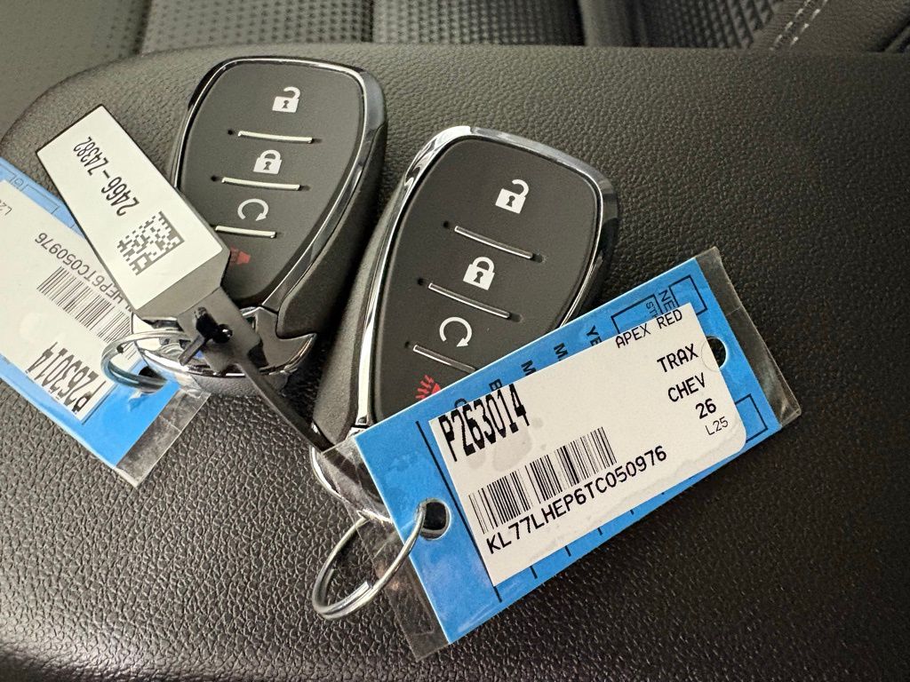 2026 Chevrolet Trax LT 4D Sport Utility FWD ECOTEC 1.2L Turbo 6-Speed Automatic Apex Red 28/32 City/Highway MPGExperience the Courtesy Way, we make buying a vehicle simple and easy on any new Chevrolet in stock! Internet price for cash purchase or on approved credit. Some Commercial fleet vehicles include bid assistance that require a Commercial Fleet license and are not compatible with factory rebates. Internet price may include some consumer cash to finance through GM financial on approved credit. New Vehicles may have market adjustment pricing. See dealership for further details. Sales price is plus tax, title, license, and $599 Doc fee, and dealer installed accessories. All New & Used Courtesy vehicles come pre-equipped with Lifetime Window Tint for $499, providing 99% UV protection and long-term interior preservation. 360Shield Ceramic Coating is included for $399, offering durable exterior and interior protection. The CarRx GPS App adds connected driving and theft protection for $399, and Door Edge & Handle Cup Protection helps maintain a like-new appearance for $299. Nitrogen for Life is included, and trucks feature a Spray-In Bedliner for $995 when applicable.2-Way Adjustable Front Head Restraints, 3 Years SiriusXM, 3.50 Final Drive Axle Ratio, 4-Way Manual Front Passenger Seat Adjuster, 4-Wheel Disc Brakes, 6 Speakers, 6-Speaker Audio System Feature, 6-Way Manual Driver Seat Adjuster, ABS brakes, Adaptive Cruise Control, Air Conditioning, AM/FM radio, Auto High-beam Headlights, Automatic temperature control, Bose Audio system, Brake assist, Bumpers: body-color, Cloth/Evotex Seat Trim, Compass, Delay-off headlights, Driver Confidence Package, Driver door bin, Driver vanity mirror, Dual front impact airbags, Dual front side impact airbags, Electronic Stability Control, Emergency communication system: OnStar One Essentials, Exterior Parking Camera Rear, Front and Rear Black Bowtie Emblems, Front anti-roll bar, Front Bucket Seats, Front Center Armrest, Front Doors Keyless Open, Front reading lights, Front wheel independent suspension, Fully automatic headlights, Heated Driver and Front Passenger Seats, Heated Power-Adjustable Outside Mirrors, Heated Steering Wheel, Illuminated entry, Lane Change Alert with Side Blind Zone Alert, Low tire pressure warning, LT Convenience Package, Occupant sensing airbag, Outside temperature display, Overhead airbag, Overhead console, Panic alarm, Passenger door bin, Passenger vanity mirror, Power door mirrors, Power steering, Power windows, Preferred Equipment Group 1LT, Premium audio system: Chevrolet Infotainment 3, Radio: AM/FM Stereo Audio System, Rear Cross Traffic Alert, Rear Park Assist, Rear window defroster, Rear window wiper, Remote keyless entry, Security system, SiriusXM Trial Subscription, Speed control, Split folding rear seat, Spoiler, Steering wheel mounted audio controls, Tachometer, Telescoping steering wheel, Tilt steering wheel, Traction control, Trip computer, Variably intermittent wipers, WHEELS, 22 STEEL, Wheels: 17 Inch Gray-Painted Machined Aluminum Alloy, Wireless Apple CarPlay/Wireless Android Auto, Wrapped Steering Wheel, ***Lifetime Window Tint, ***Lifetime Nitrogen Filled Tires, ***CarRx Vehicle Security with GPS and 1-year subscription, ***Door Edge Guards with Cup Protectors, ***360 Degree Ceramic Coating. Some Commercial Cab & Chassis and Cutaway vehicles may not have body cost included in price, Price does include the following rebates:$500 - Chevrolet GM Financial APR & NCC Consumer Cash Program: $500 discount and 5.69% APR for 36 months. $30.28 per $1000 financed. Available to well qualified buyers who finance through GM Financial. XGQ, NCC. Exp. 03/02/2026 This rebate is only available if you also take the 'Chevrolet GM Financial APR & NCC Consumer Cash Program: $500 discount and 5.69% APR for 36 months' rebate. $500 - Chevrolet GMF Bonus Cash Program. Exp. 03/02/2026